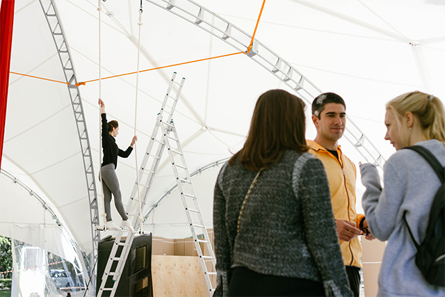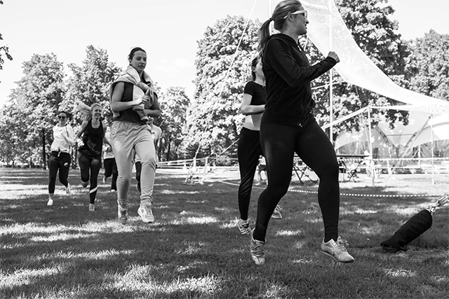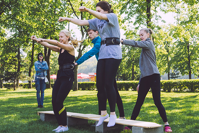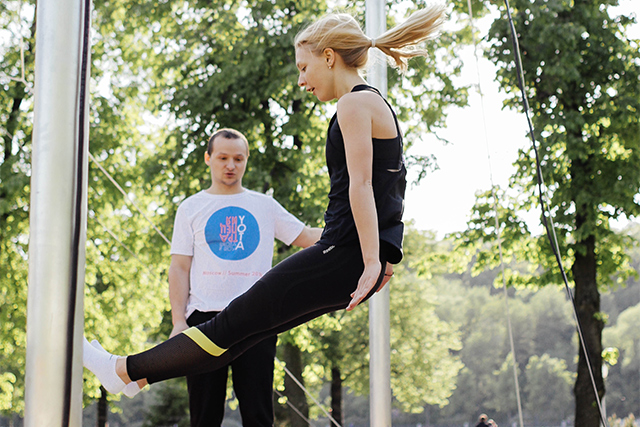 По инициативе Льва Кассиля, мобильного оператора Yota и французской сети курортов Club Med на лужайке «Лужников» школа с официальным многосоставным названием «Трапеция Yota — школа и шоу» собрала, без всяких преувеличений, лучших в своем деле. Разминку команде Buro 24/7 проводила актриса, увлекшаяся всем этим цирком благодаря мюзиклу «Сколько стоит любовь», в котором ей довелось играть. Обучает искусству обращения с полотнами постановщик того самого мюзикла. На батуте учит прыгать, не травмируя колени и локти, приземляться на самую модную сегодня часть тела и вставать с нее на стопы, спортсменка, чемпионка Олимпиады по этому виду спорта (да, он олимпийский). Ну а сам мастер трапеции — Итамар Эльзаир — главный тренер и руководитель школы, в резюме которого более 20 лет работы в цирковых школах, а также собственная в Израиле. В общем, без паники! Вы в надежных руках. Впрочем, несмотря на голос разума и все регалии тех, кому вы вверяете себя на два часа занятия, панику и животный страх усмирить действительно нелегко. По крайней мере, мы попробовали.