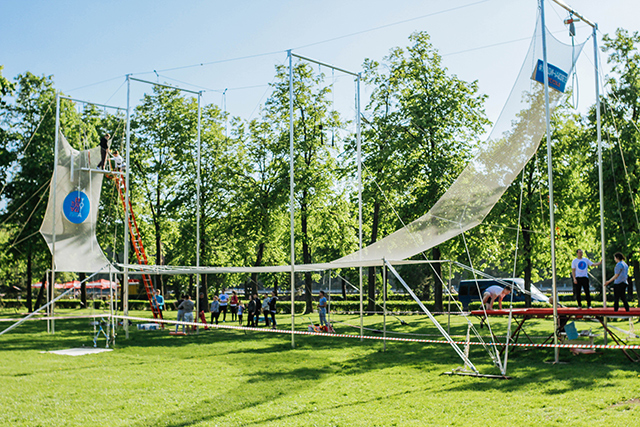 26 мая на территории спорткомплекса «Лужники» открылась первая московская трапеция, обучающая желающих приобщиться к цирковому искусству. Работать школа будет в течение всего лета, а оно, хочется верить, все-таки наступило не только в календаре и будет солнечным, сухим и теплым. Трапеция доступна к посещению абсолютно всем желающим безо всяких возрастных ограничений: во время нашего редакционного эксперимента на «снаряде» успела позаниматься девочка лет 6, совершив свой пятый прыжок, поэтому не стоит сомневаться, если вашей семье наскучил роликово-велосипедный досуг — берите всех в парк Лужники и ищите там одну из самых примечательных конструкций.