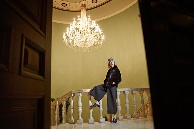 Во втором образе — с длинной шубой Braschi из баргузинского соболя, брюками высокой посадки, водолазкой и сапогами-ботфортами — Женя походила на звезду черно-белого кино 40-х годов. Кстати, во многом благодаря прическе, ведь актрисы того времени носили такие же волнистые каре. Среди них, к примеру, Марлен Дитрих, чей стиль вдохновил нас на создание еще одного образа для Жени — с жакетом Braschi из меха норки, широкими брюками-юбкой, остроносыми ботинками и шапочкой с вуалью.
