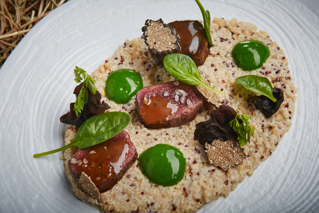 Описание блюда в меню создает, с философской точки зрения, воображаемую реальность, то есть наше представление об объекте, с которым мы скоро встретимся. Степень расхождения ее с реальностью наличествующей создает пространство для иллюзий. Последние могут быть позитивными, вызывающими желательные восходящие эмоции, и негативными, мешающими объективно оценить сделанное. Скажем, меренга окажется муссом (и никакого тебе хруста и игры текстур, а сплошная мягкотелость), а огромная гребенчатая креветка неожиданно выступит главным героем блюда и оттеснит ожидаемые помидоры на периферию. Или строганина окажется не строганиной, а сугудаем — сибирским севиче. Зато заурядная простокваша превратится в событие! Во-первых, потому что готовить ее будут прямо у тебя на глазах, створаживая молоко сывороткой, во-вторых, потому что ее заправят мармеладом из облепихи, желтой малиной, соусом из морошки, попкорном из гречки, грецким орехом и тем самым алтайским медом, приправленным fleur de sel (оказывается, кондитеры часто подсаливают сладкое, чтобы сделать его вкус более выпуклым), в-третьих, потому что демонстративно оросят десерт солью, смешанной для более эффектной демонстрации процесса с сухим льдом. Химия и жизнь, да и только!
