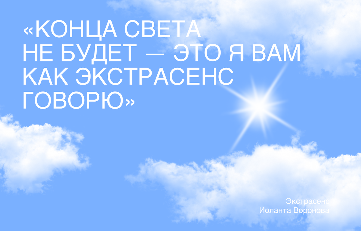 «Ничего особенно страшного после этой эпидемии не произойдет. Будем жить, влюбляться, ходить в гости, любить и ненавидеть, работать и отдыхать. Конца света не будет — это я вам как экстрасенс говорю».