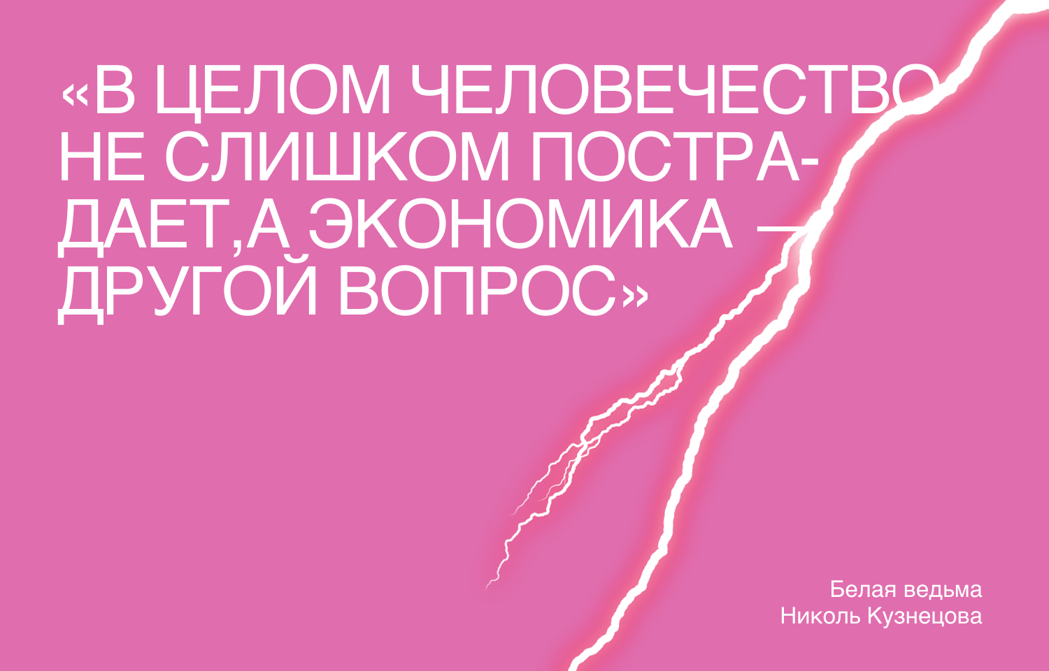 «Пандемия имеет те же задачи, что и любые болезни и катаклизмы: обеспечить смертность человечества. В мироздание заложено, что люди не должны жить вечно или хотя бы слишком долго. Пандемии, войны, личные кризисы и болезни — все это средства убрать людей из мира живых. По возможности дав каждому какой-то индивидуальный духовный урок».