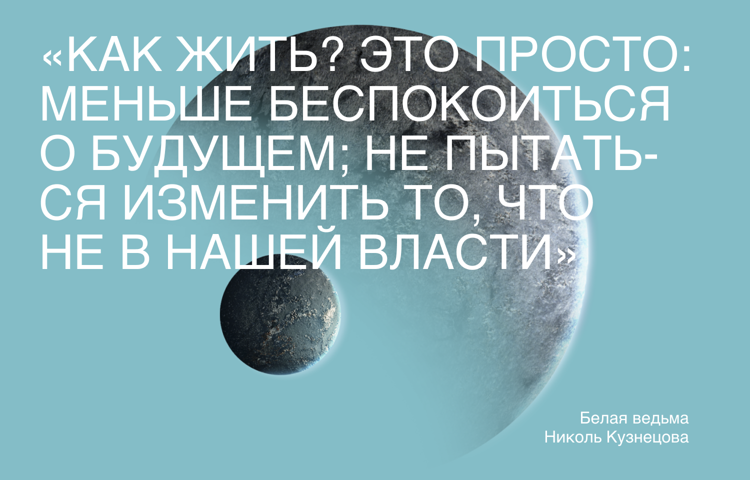 «Как жить? Это просто: меньше беспокоиться о будущем; не пытаться изменить то, что не в нашей власти. И помнить: многое, что сегодня кажется несчастьем, в итоге обернется к лучшему. А вот если человек решит, что все в жизни зависит только от него самого, его ждет разочарование. И нынешняя пандемия лишний раз это доказала».