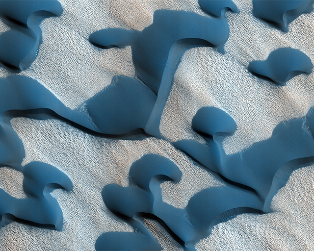 Такие фотографии с 2006 года делает многофункциональная автоматическая межпланетная станция Mars Reconnaissance Orbiter. Снимки сделаны с помощью камеры высокого разрешения HiRise, установленной на борту аппарата. У камеры есть свой официальный сайт, на котором и происходит публикация всех работ устройства. Последняя выгрузка фотографий, произведенная NASA на ресурс, оказалась поистине масштабной. Более тысячи изображений позволяют практически в деталях рассмотреть поверхность Марса. Станция высылает снимки на Землю раз в 26 месяцев, когда расположение Солнца, Марса и Земли такое, что позволяет на несколько недель установить сильную и бесперебойную связь между аппаратом и земной командой.