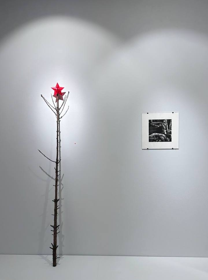 Отдельно еще хочу отметить бронзовую новогоднюю елку работы Игоря Самолета. Ее уже в первые часы ярмарки купили со стенда галереи szena/сцена за 800 тысяч рублей. Даже не знаю, что меня в ней зацепило, в такой лысой и худенькой, но зато со звездой на макушке. Возможно, эта работа просто созвучна состоянию под конец года, все мы бодримся, но немножко уже подсохли.