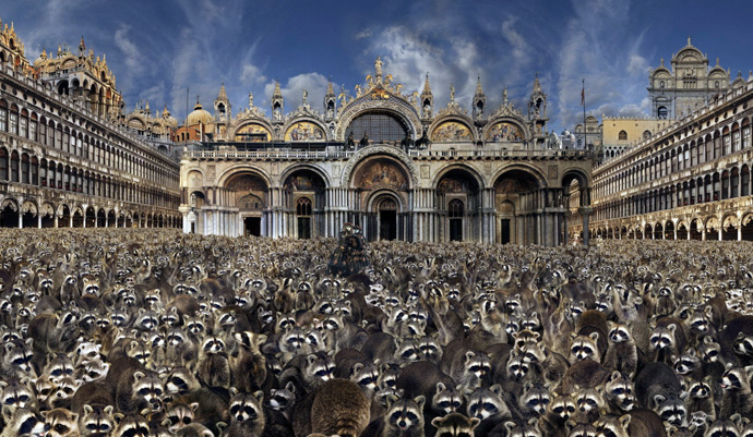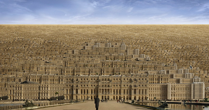 Использование техники коллажа, наложение сотен изображений дает ощущение глубины и пространственности. В своих масштабных работах художник использует бесконечно малые и бесконечно большие величины, что погружает зрителя в глубину каждой детали.
