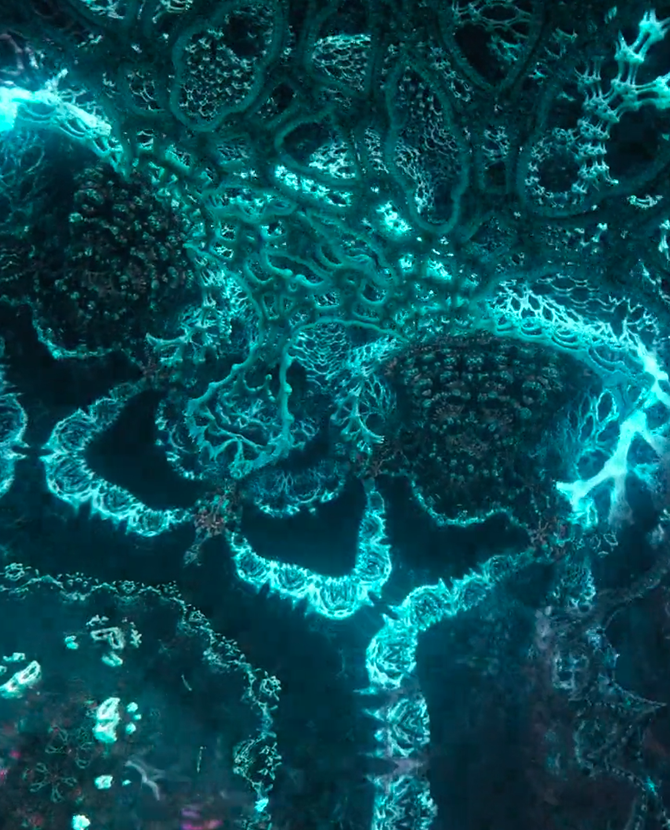 Фрактальная фантазия кораллов, посвященная проблеме их вымирания. С 2016 года пятая часть всех кораллов в мире погибла. Если эта тенденция сохранится, все оставшиеся рифы исчезнут в течение следующих 40 лет.