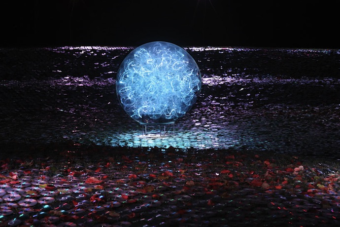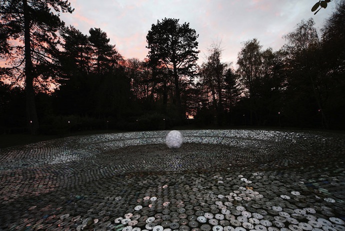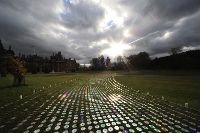Британский художник Брюс Мунро создал две масштабные инсталляции из десятков тысяч компакт-дисков: Angel of light и Blue Moon on a platter. Он разместил их в парке, который расположен вокруг особняка Waddesdon Manor в английском графстве Букингемшир. Каждая состоит из десятков тысяч компакт-дисков, которые сверкают и переливаются на солнце, а в темное время суток освещаются светодиодами. Blue Moon on a platter представляет собой круг — блюдце диаметром 28 метров. Посредине находится большой светящийся шар, символизирующий луну. Рядом — колонки, из которых раздается тематическая музыка. А Angel of light — это круговая дорожка из 50 тысяч дисков, что мерцают на лужайке перед домом, в свете лампочек, расположенных по их краям.