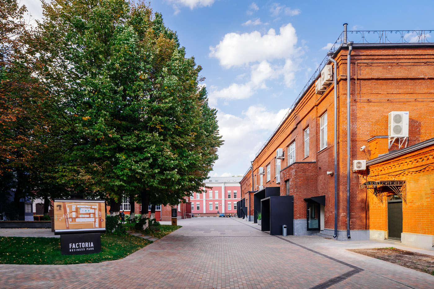Концепция предполагала восстановление исторической кладки фасадов в местах, где это возможно, создание пешеходной улицы с благоустройством, бетонными лавочками, окнами в пол и настилом для размещения ресторанов. Основная идея — в объединении территории и создания особой атмосферы для привлечения арендаторов с интересными проектами. Сейчас на «Фактории» уже работают Starbucks, «Хлеб и вино», кофейня Bloom-n-Brew, фуд-маркет, тренажерный зал и центр скалолазания. В 2019-м также запустилось пространство Collider — тут, помимо офисной зоны, открыта ивент-площадка и бар с вечеринками по выходным.