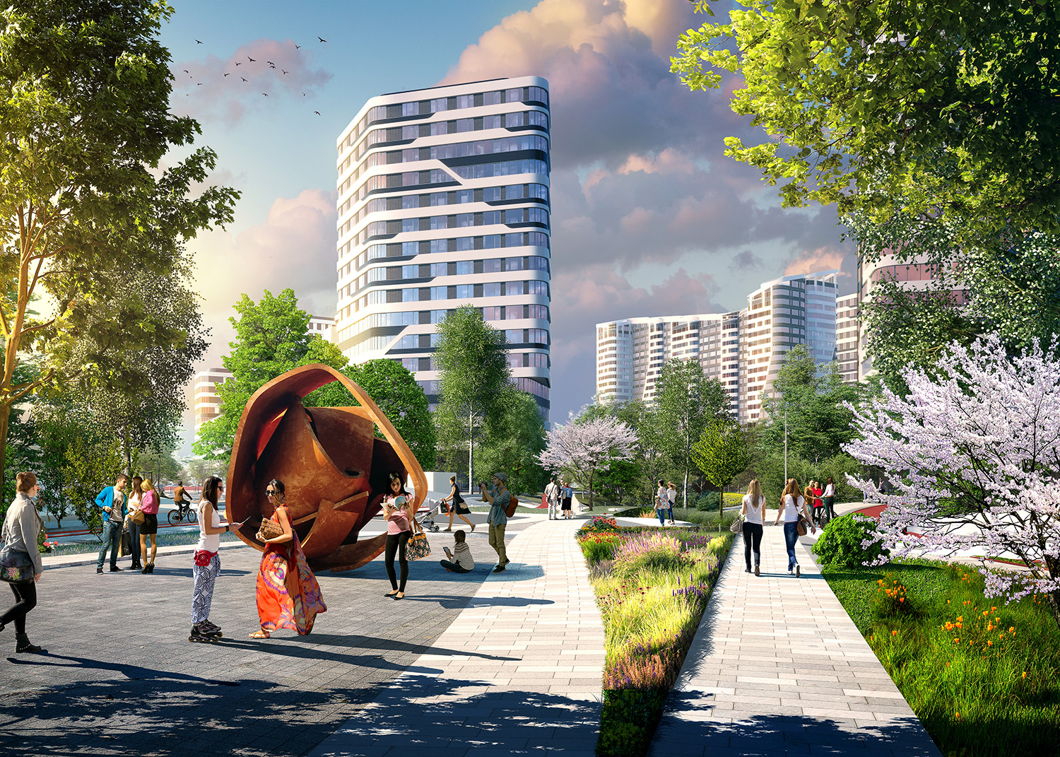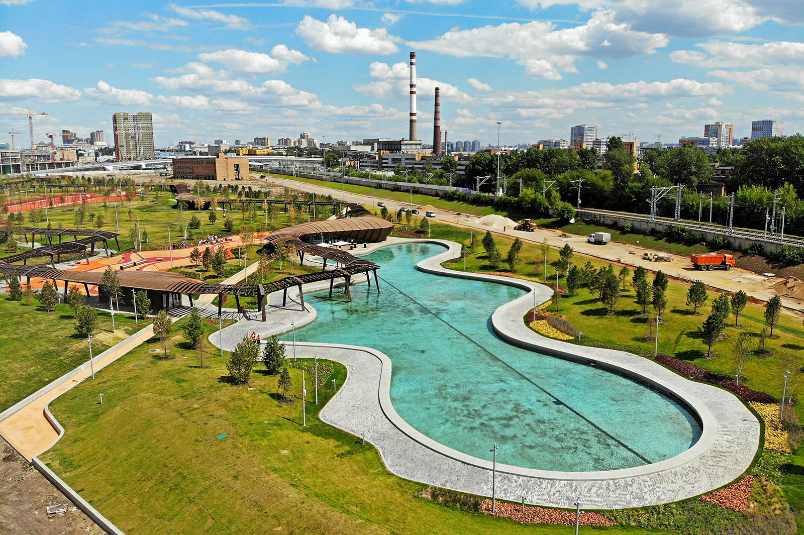 По замыслу архитекторов, здесь должна возникнуть «parkway» — улица с видом на парк, на которой появится среди прочих зданий московский филиал Эрмитажа. Автор проекта парка — голландско-американский дизайнер и урбанист Джерри Ван Эйк. Его ключевой элемент — пергола и прогулочная зона под ней длиной 1,3 км со смотровой площадкой и водоемов (тот самый Лизин пруд). Пергола выполнена из кортена — это сталь с оттенком патины, устойчивая к атмосферной коррозии. Пока парк осваивают приезжие из других районов и строители, работающие над возведением зданий «Зиларта», но с учетом размаха проекта — 6,4 млн кв. метров недвижимости — скоро ситуация изменится.