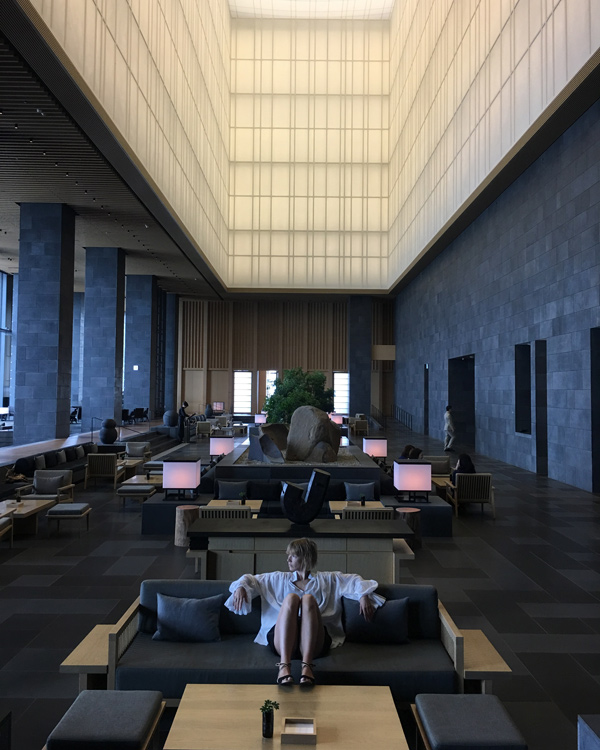 Поскольку из Токио мы то и дело уезжали в другие точки и возвращались обратно, то останавливались в нескольких отелях. Особенное впечатление произвел Aman. Любителям sophisticated отелей эта сеть известна. В Токио он особенный — и с точки зрения архитектуры, и в плане внутреннего пространства. Он расположен на верхних этажах башни Otemachi, и лучших видов на город, Императорские сады, наверное, больше нигде не найти. Лобби отеля поражает своими масштабами. Это огромное пространство, потолок которого устремлен вверх почти на 26 метров и обрамлен белой, полупрозрачной рисовой бумагой. По замыслу дизайнера Керри Хилла, который много сотрудничал с Aman, лобби должно напоминать о сёдзи — перегородках в традиционном японском жилище, сделанных из бумаги васи. Это настоящее дзен-пространство, но очень современное. Побыть его частью хотя бы несколько дней — невероятный экспириенс.