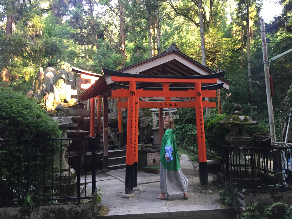 В Киото мы обошли множество храмов, но одно место нам особенно запомнилось — Святилище Фусими Инари с тысячей оранжевых ворот. Мой молодой человек назвал это ленд-артом — бесконечные коридоры из ворот и храмы в густом лесу, покрывающем гору. Здесь всегда толпы шумных фотографирующихся туристов, но не все из них идут глубоко в лес. Мы решили идти до самого конца, несмотря на жару и усталость. Кстати, в этом парке есть точки, где можно купить воды, и чем дальше ты идешь, тем дороже вода, поэтому рекомендую запастись своей. Так вот, чем дальше мы шли, тем меньше было туристов, то и дело попадались храмовые постройки, где проводились какие-то ритуалы. Оранжевый коридор в окружении этого леса выглядит потрясающе — действительно ленд-арт. Чувствуешь себя в хорошем смысле хозяином этого леса, частью пространства, сливаешься с гармонией. Несмотря на отсутствие людей, лес буквально гудел от звуков, но громче всего трещали цикады. Я такого треска насекомых не слышала нигде. В какой-то момент мы просто привыкли к нему, и тогда вдруг попали в зону, где все насекомые и мелкие птички зазвучали как оркестр. Это была закольцованная вибрационная мантра, которая поднималась от высоких тонов и спускалась к низким, потом замолкала, и всё начиналось заново. Это было очень красиво.