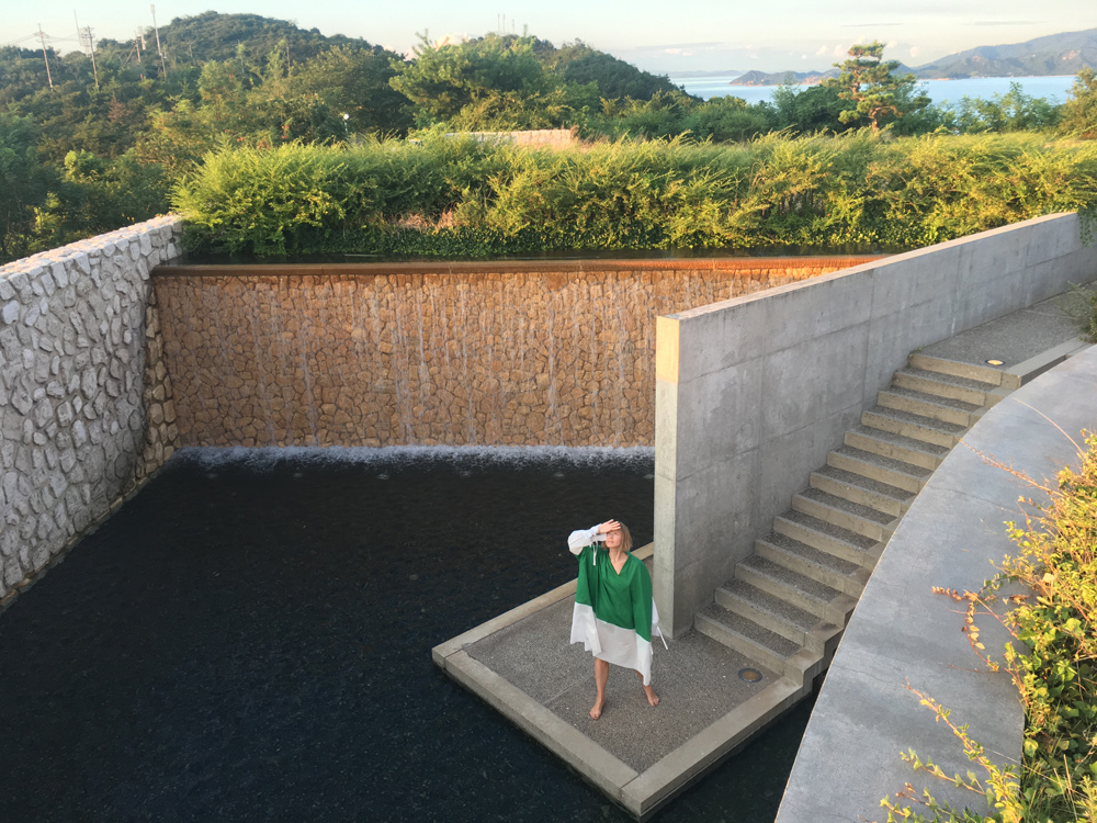 В отеле моей целью был номер в пространстве Oval Room, на самой высокой точке острова. Жить в центре арт-пространства — потрясающий экспириенс. Гармония архитектуры и природы, когда первая не перекрикивает, а тихо дополняет вторую — это именно то, что я люблю. У японцев с этим всё отлично, как мы все знаем. Советую всем бронировать номер в этом месте задолго до поездки, и, если есть деньги и возможность, не жалеть и снимать именно Oval Room. И лучше минимум на две ночи, я бы сама так и сделала, но получилось только на одну, так как у них всё было fully booked. Путь из Токио на остров неблизкий, из центра столицы, наверное, часов шесть с половиной на двух поездах и пароме.