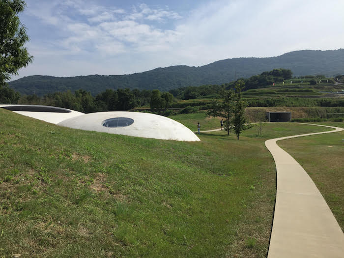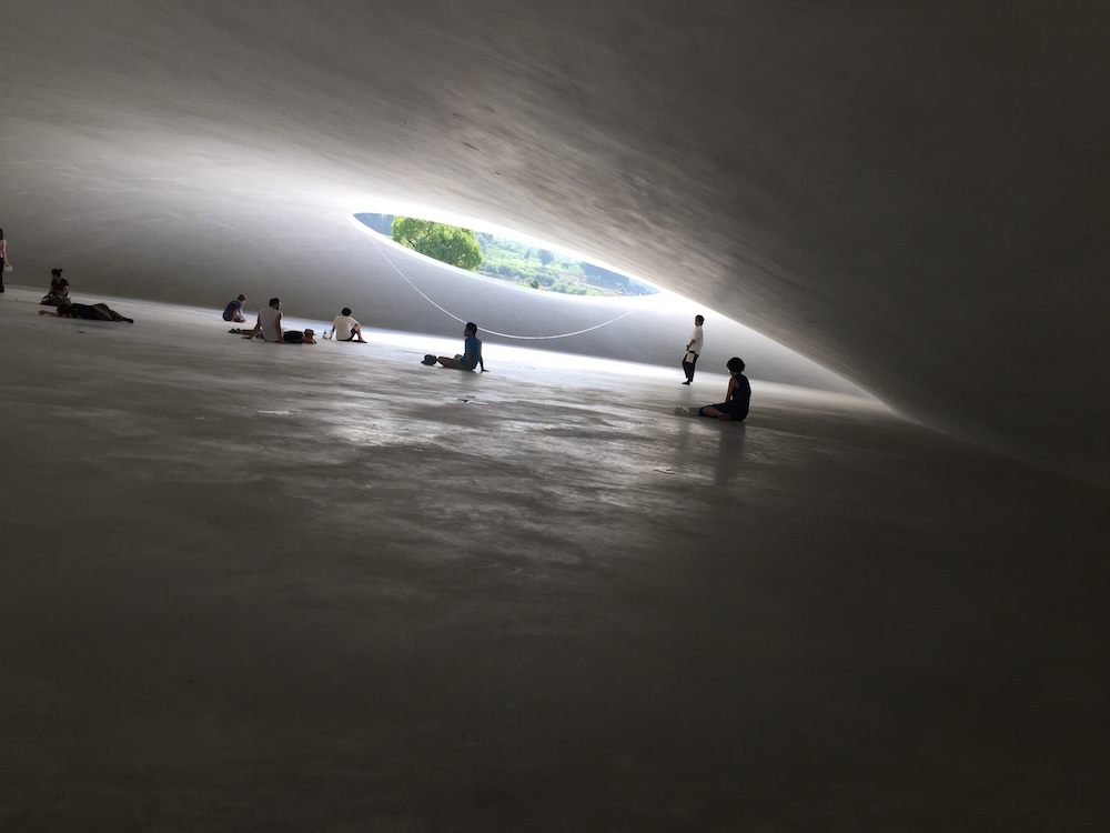 Наосима окружен несколькими островами, и на одном из них мы успели побывать. Остров называется Тэсима, он примечателен своим фантастическим Художественным музеем. Это будто белоснежный инопланетный корабль с огромным круглым окном в потолке, через которое ты видишь зеленый лес вокруг и чистое небо. В такие моменты по-настоящему захватывает дух.