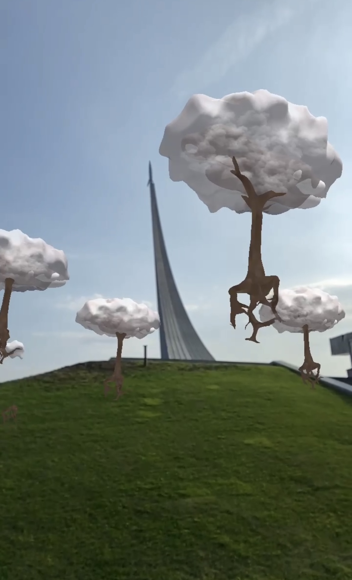 Облачный узел — это то место на пути ракеты, где образуются облака. По мнению художников из Мастерской 15, основанной в 2018 году медиахудожницей Натальей Алфутовой и разработчиком игр Ярославом Кравцовым, в этой зоне вполне могли бы обитать сказочные существа и вымышленные объекты. Для начала облачную реальность решено было заселить деревьями, которые оживают, отрываются и воспаряют ввысь, кружа над землей, почти на той же высоте, что и утопические поселения, созданные по подобию рисунков Крутикова. Воздушный сад, разросшийся вокруг монумента «Покорителям космоса», составил бы отличное соседство летающим домам. Да и зачем заселять космос, если пока можно детально продумать архитектуру воздушного пространства прямо над нами.