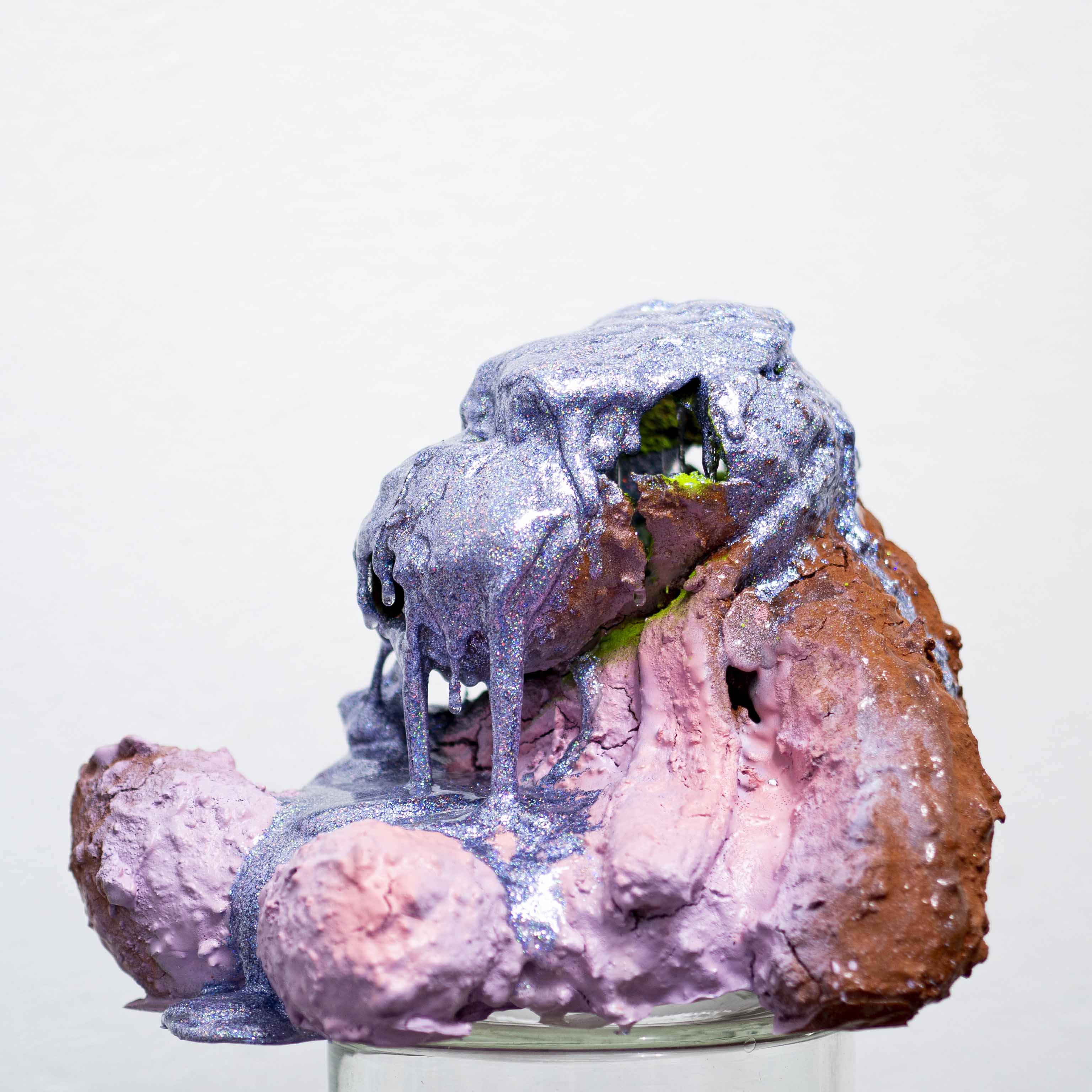 Очень интересные работы у Даниила Антропова и Яна Тихоненко. Например, на ярмарке blazar в 2022 году впервые показали их серию «Спят усталые игрушки». Завораживающий контраст: эти работы правда похожи на старые мягкие игрушки, раскрашенные яркими цветами и блестками, но со следами какой-то страшной истории, оплавленные и опаленные.