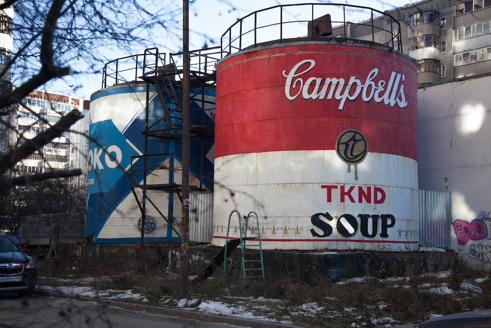 Изначально это были два гигантских резервуара-бочки из неработающей котельной, а теперь это достопримечательность, возле которой сфотографировались, кажется, все ребята из ближайших школ Ботанического района. В обиходе закрепилось предложение «залезть на сгущенку».