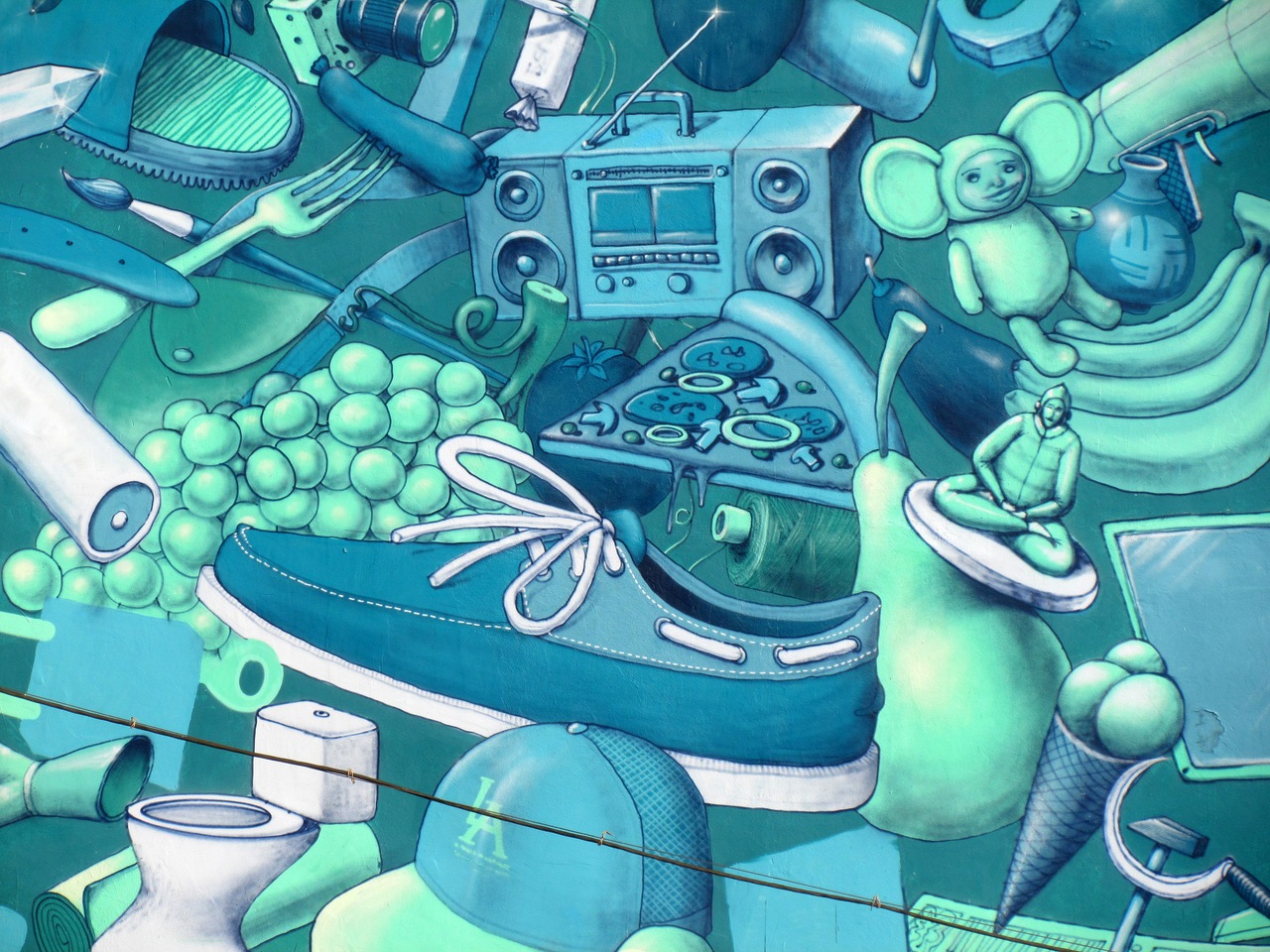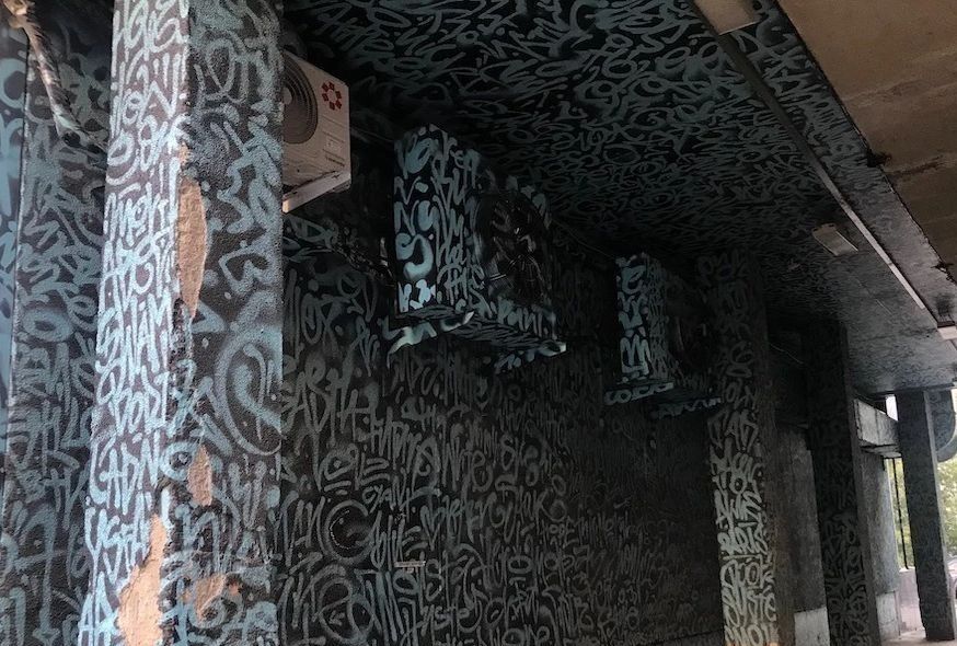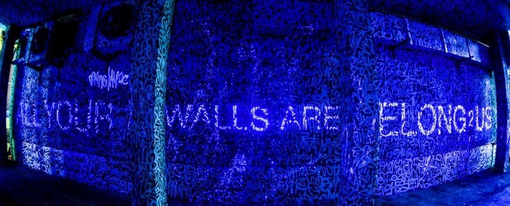 Ковер из тегов — не просто разобщенные слова; это свыше тысячи имен талантливых граффити-художников. И в них спрятано послание, проявляющееся только в ультрафиолетовом свете — фраза «All your walls belong to us». Рисунок стал одним из самых популярных мест для фотосессий. Пройти к граффити можно через ремонтируемое здание легендарного кинотеатра «Салют», основанного в 1912 году и закрывшегося в этом феврале. Петиции горожан не смогли остановить передачу здания во владение центра «Одаренность и технологии» — теперь здесь планируют проводить выставки и фестивали детского творчества. Поэтому послание «All your walls belong to us» спустя семь лет можно трактовать по-разному — и решить, за кем же все-таки остается последнее слово в борьбе за городские пространства.