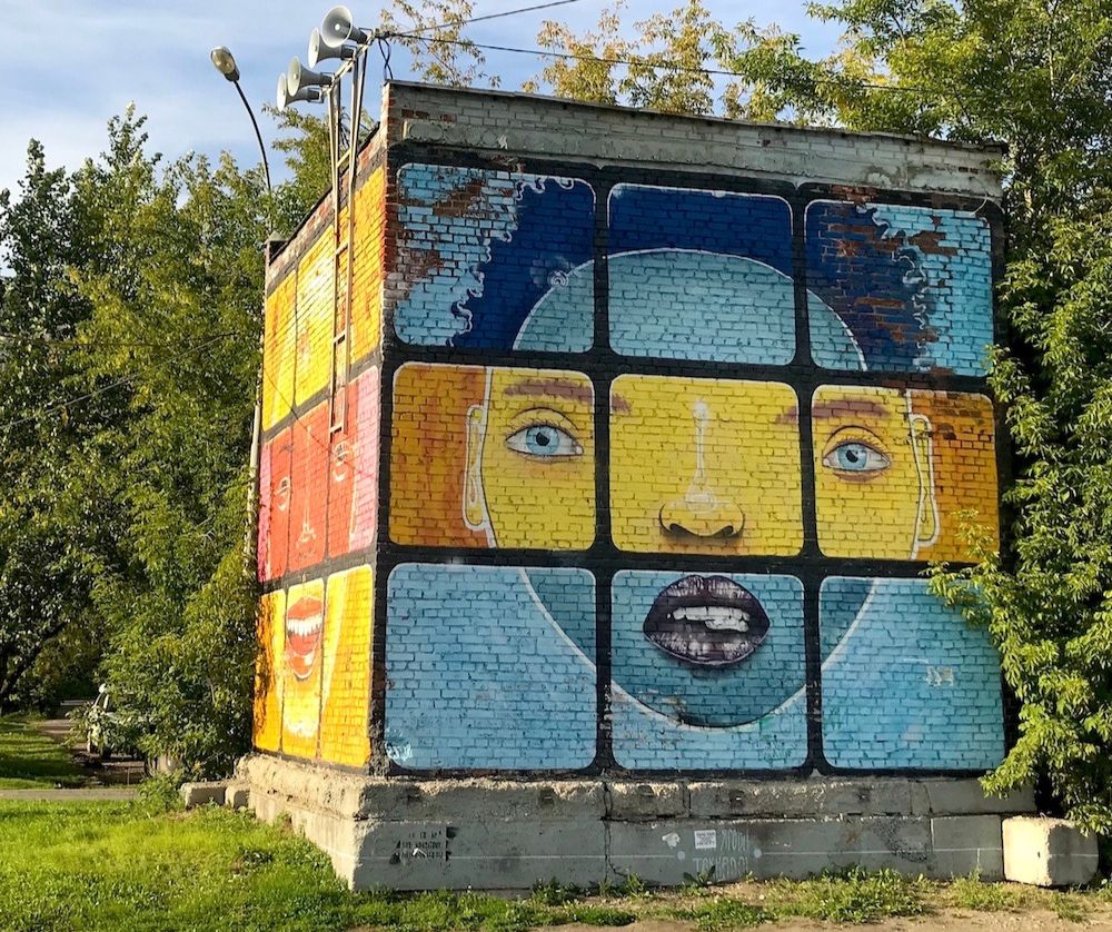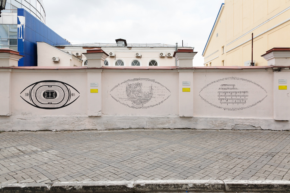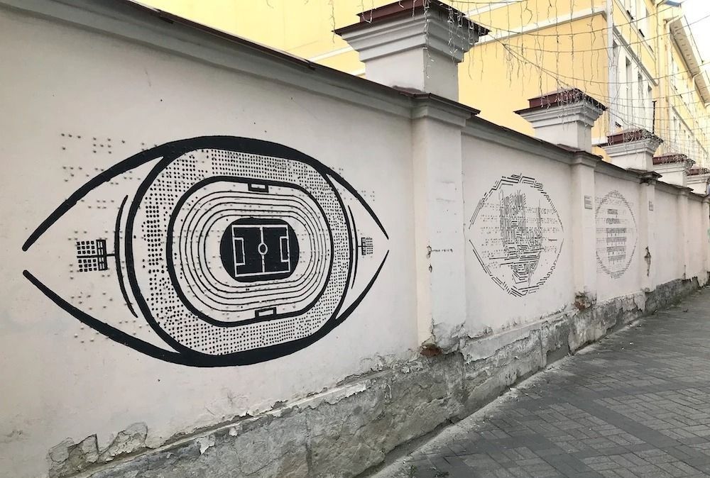 Первое в России граффити для незрячих, расположенное на задней стороне Детской филармонии по ул. 8 Марта, 36 (рядом с главным входом в ТРЦ «Гринвич»)