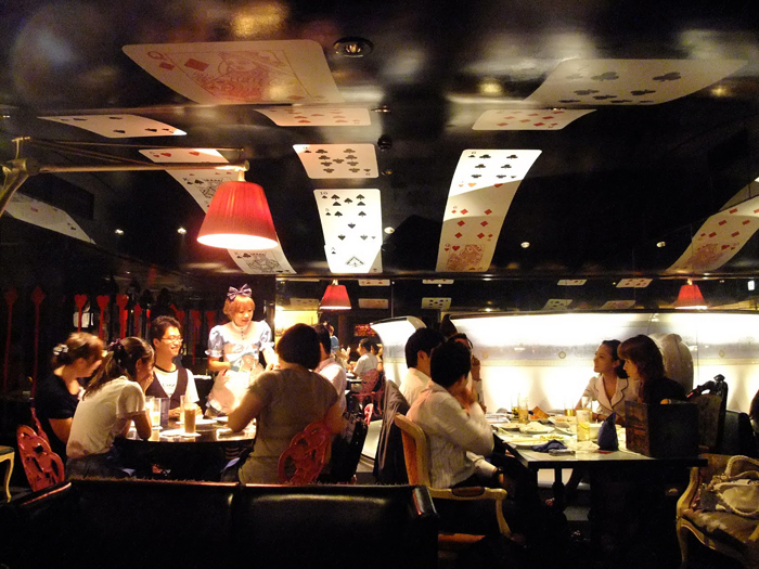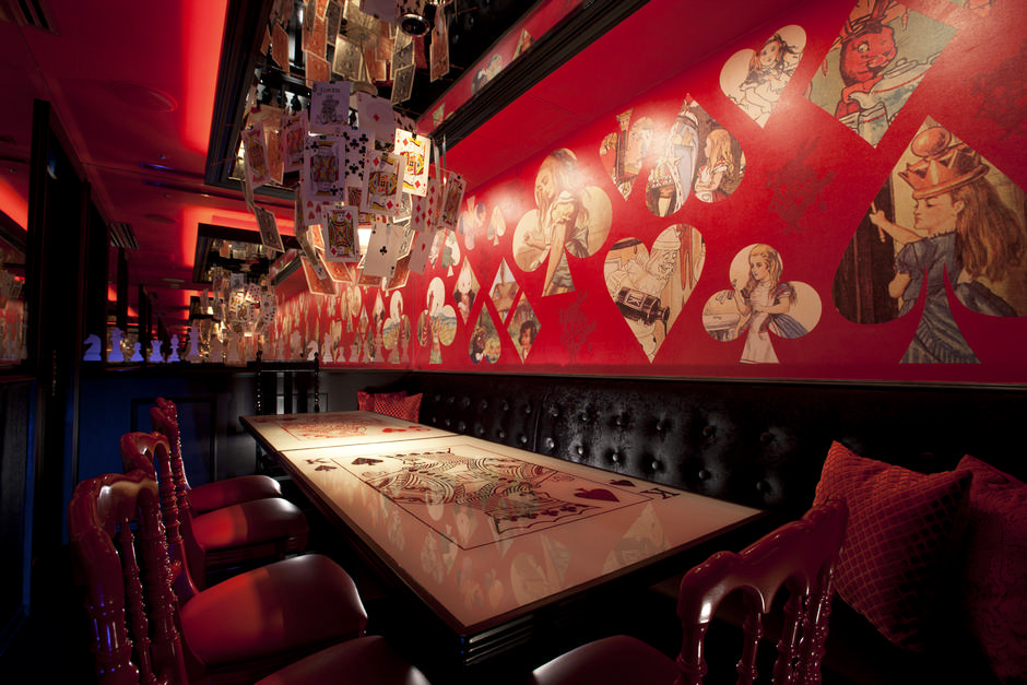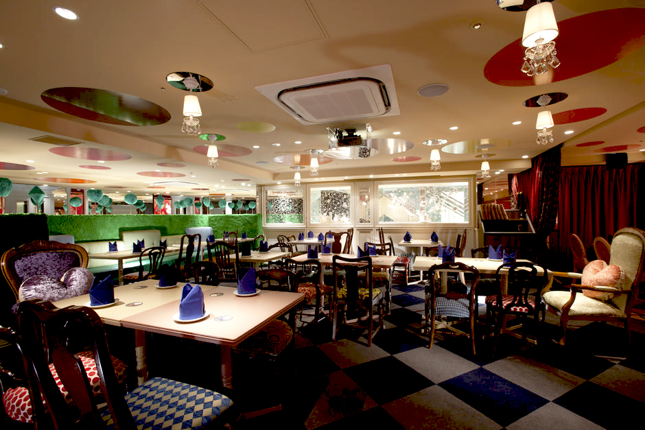 Известная в Японии сеть Dimond Dining открыла новый тематический ресторан Alice in Wonderland. Идея ресторана, как следует из названия, родилась из книги Льюиса Кэрролла "Алиса в Стране чудес". Оформлением появившегося в Токио необычного заведения занималась студия Fantastic Design Works — и справилась с заданием на все сто. Каждый посетитель ресторана может почувствовать себя героем сказки Льюиса Кэррола. На стенах висят рисунки Джона Тенниела, первого иллюстратора книги про Алису, кроме того в заведении есть знаменитый лабиринт, в котором заблудилась главная героиня, и столы в форме сердца и игральных карт.