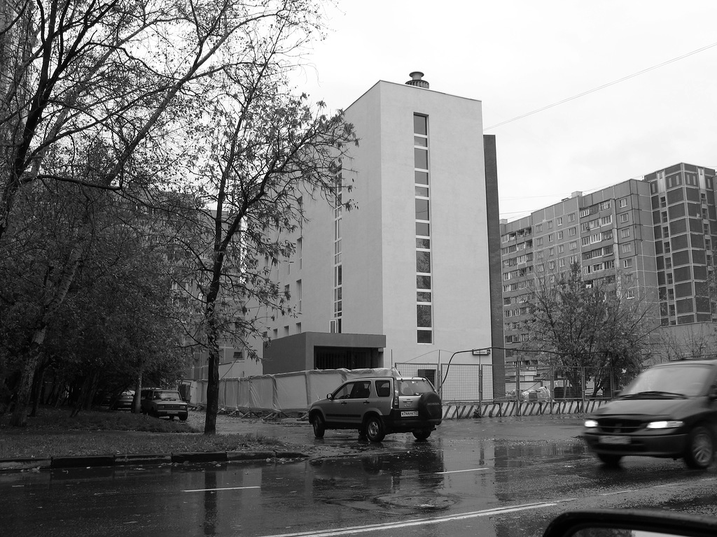 Вообще, исторические отсылки и постмодернистские намеки конца 1980-х не ограничиваются только этим проектом. В частности, характерные приемы нью-йоркского небоскреба Сони-билдинг Филипа Джонсона можно заметить и в жилом доме на шоссе Энтузиастов, архитектором которого является Алексей Козлов.