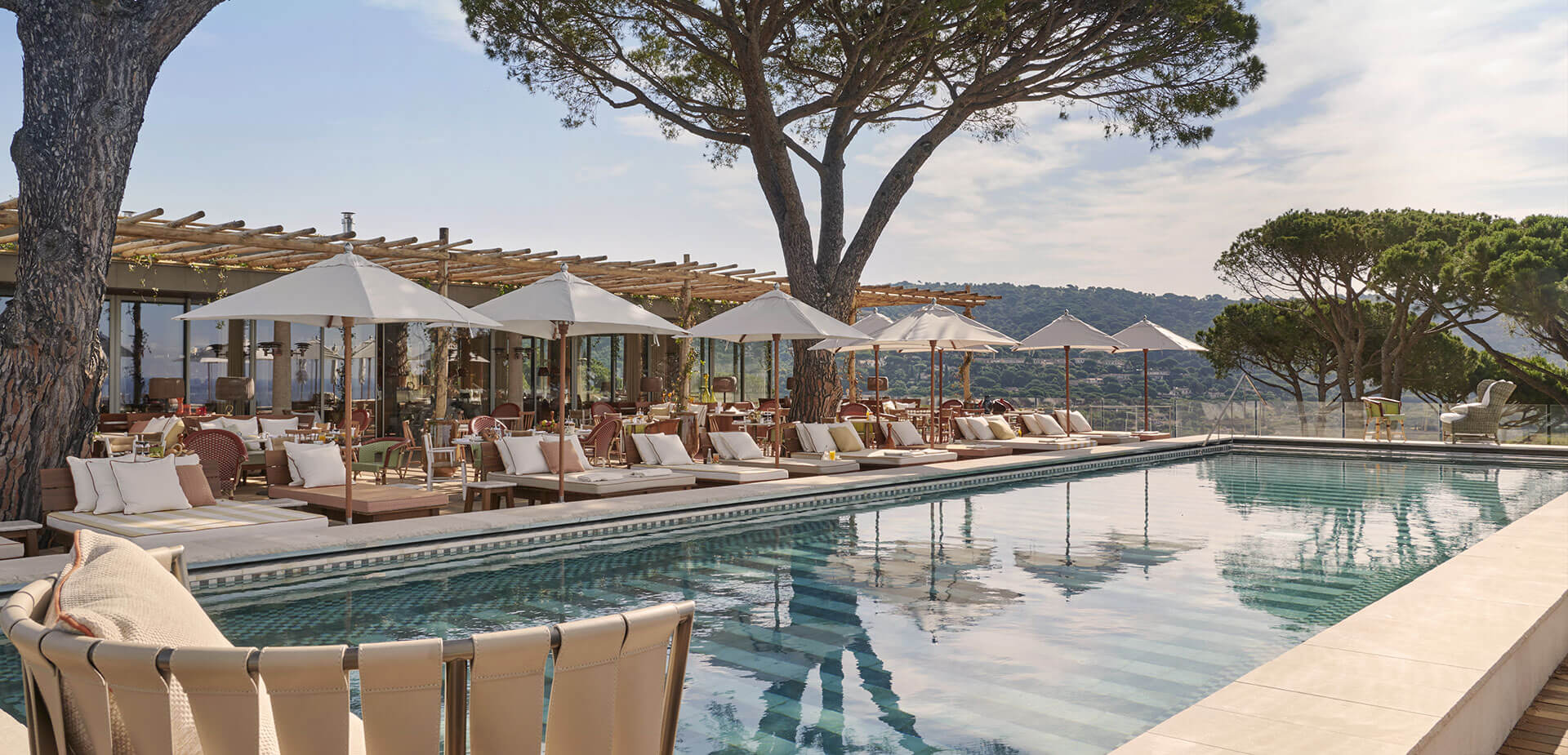 У подножия отеля есть бухта с чистейшей водой и заповедник, охраняемый государством. Также там два бассейна, отличный спа-комплекс и фитнес-программа, а до всех развлечений в Сен-Тропе (магазинов, галерей и ресторанов) — 20 минут езды. Идеальное место, на мой взгляд.