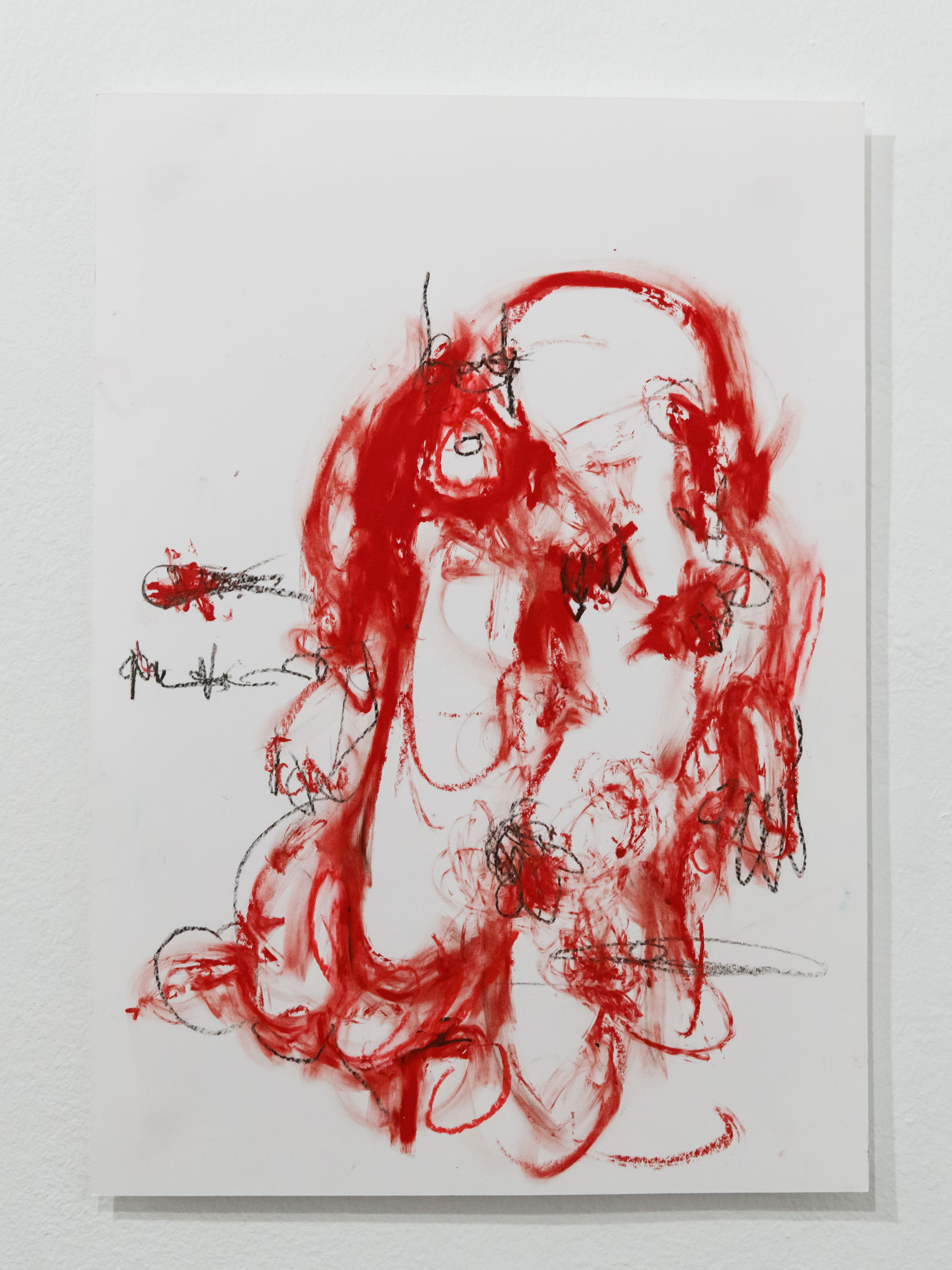Вместо министерства хочу по поводу твоей выставки договорить. Мне кажется, ее актуальность в том, что ты показываешь возникающее тело. Некоторого персонажа, видимо страшного, потому в выставке рассыпаны своего рода приметы хоррора. Есть дракон, большой титан, который вызывает ощущение опасности, а в другом зале — какой-то монстр рисуется с зубами чудовищными. Хоррор-выставка без попсы и очевидных ходов — это ясная и по-хорошему страшная метафора. Не совсем понимаю твои деревянные работы. Их, наверное, можно прочитать как гинекологическое кресло: две ноги, и оттуда извлекается тело, как при рождении. Эти руки, которые вытаскивают оттуда страшного ребенка, и он будет расти и расти, дорастет до таких гигантских размеров, что ему понадобятся костыли размером в два метра. Эти объекты могут по-разному интерпретироваться, его можно по-своему встраивать в нарратив выставки, но если мы отойдем от нарратива и просто посмотрим на этот объект как на объект, он кажется интересным именно в силу своей непонятности. Сделать непонятное, на мой взгляд, большое художественное достижение. Чем непонятнее, тем лучше!