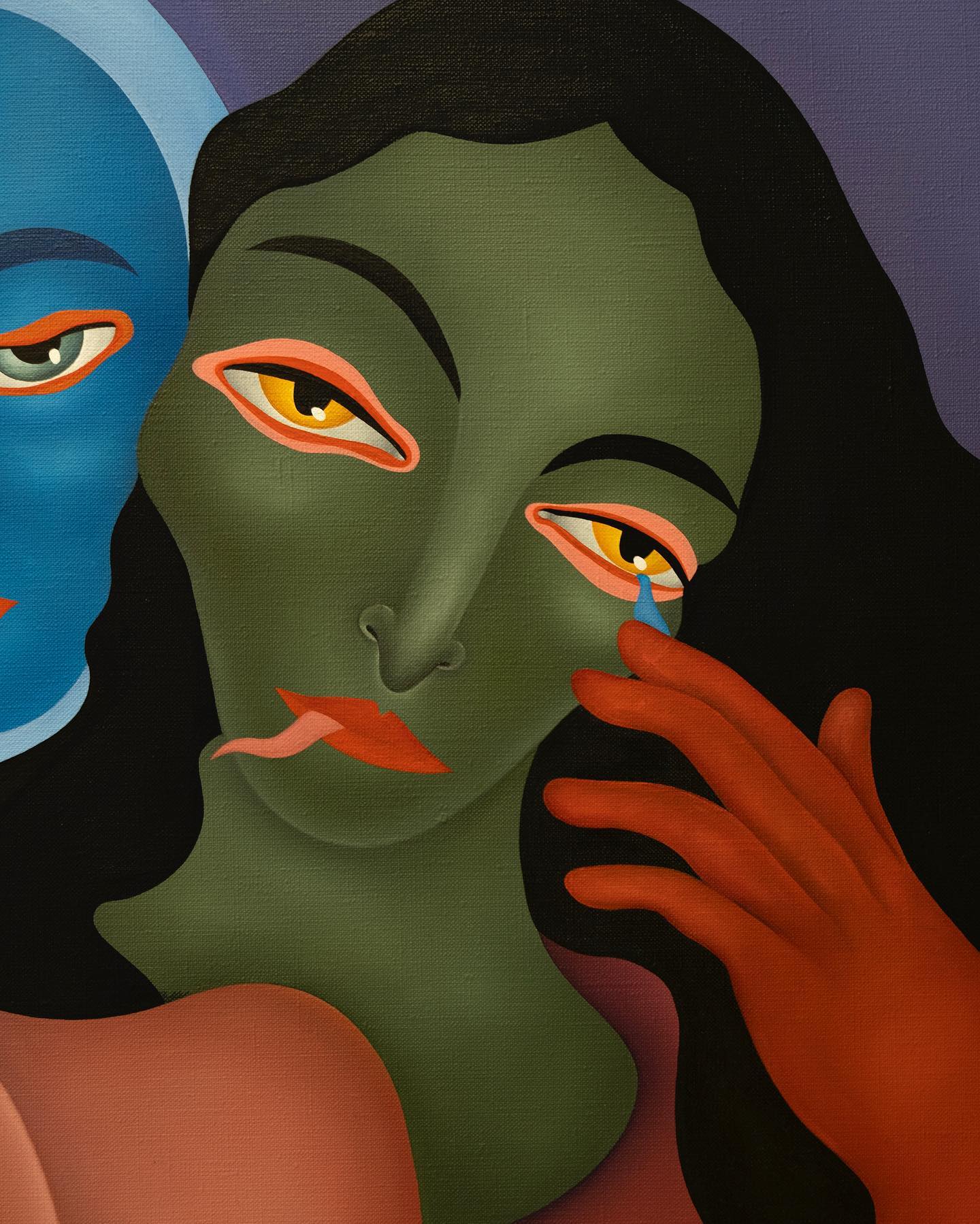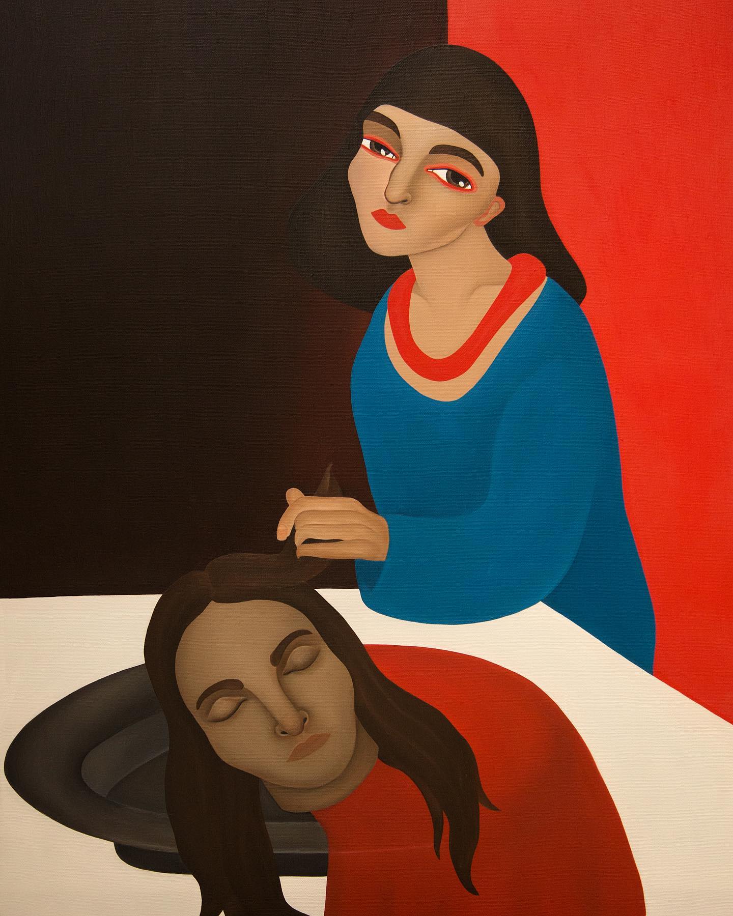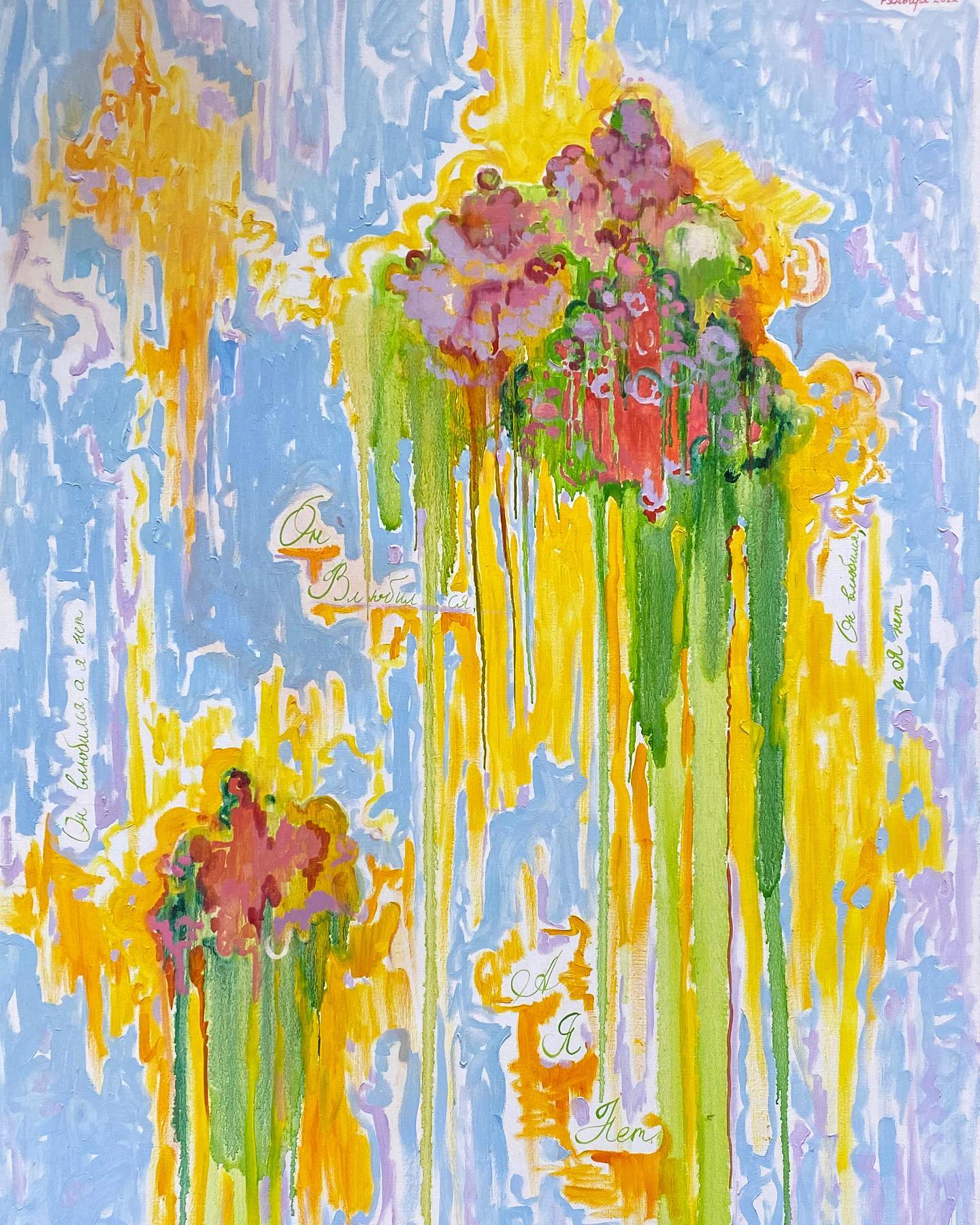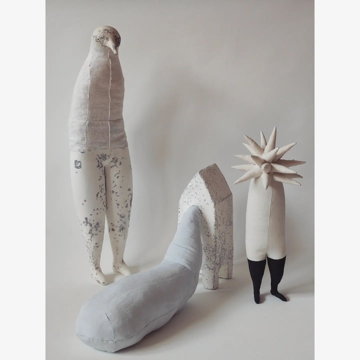 Художница представляет чувства, переживания, знания и эмоции в образах и фигурах то ли человеческих существ, то ли монстров личного бестиария. Цвета продолжают тему пластичности и инаковости форм, где все живое наделяется магнетизмом.