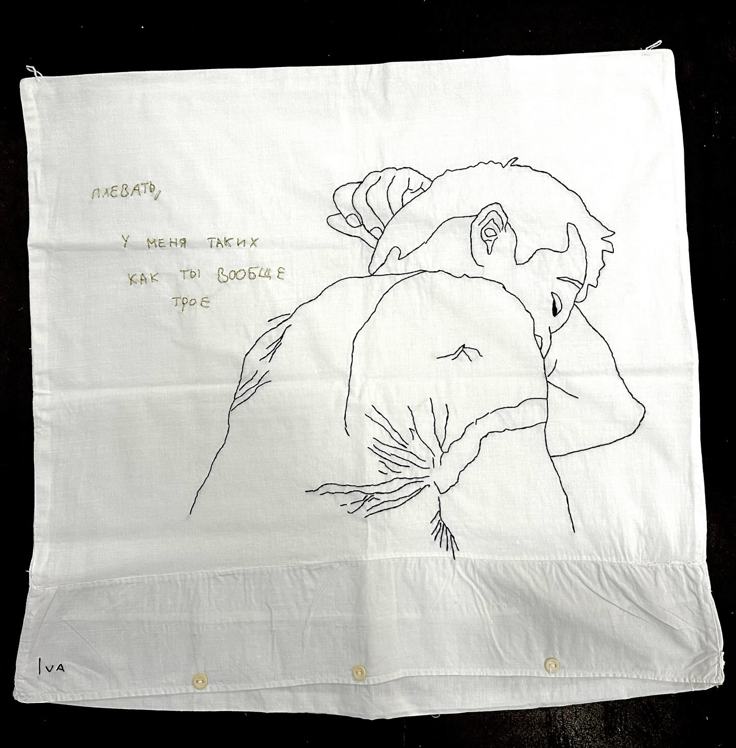 Процесс вышивки становится своего рода медитацией и молитвой, в которых художница работает с образами и чувствами стыда, боли и других переживаний, о которых не принято говорить. Шов «назад иглой» — основной инструмент в работе — символизирует два вынужденных шага назад перед тем, как сделать правильный шаг-стежок вперед.