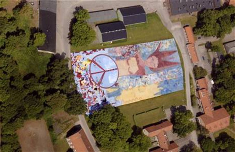Дэвиду Абергу, художнику из Швеции, понадобилось два с половиной года, 100 тонн краски и 8 тысяч квадратных метров для создания своего шедевра Mother-Earth ("Мать-земля"). Картина задумывалась как изображение всего мира и женщины — его символа. Что ж, пацифик, заменяющий нижнюю часть женского тела, — весьма оригинальное решение.