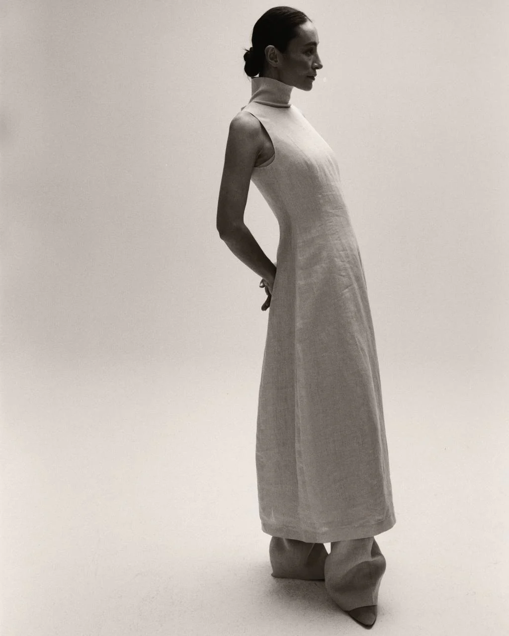 На просторах телеграма обсуждают свежий лукбук бренда Agreeg, в котором снялась Азиза Азим, дизайнер и основатель марки одежды Azi. Кадр с роскошной и утонченной Азизой в льняном платье с шелковой подкладкой и брюках палаццо — наш фаворит. Фото четко передает ДНК бренда: пастельные тона, сдержанный и изящный стиль. Все как мы любим.
