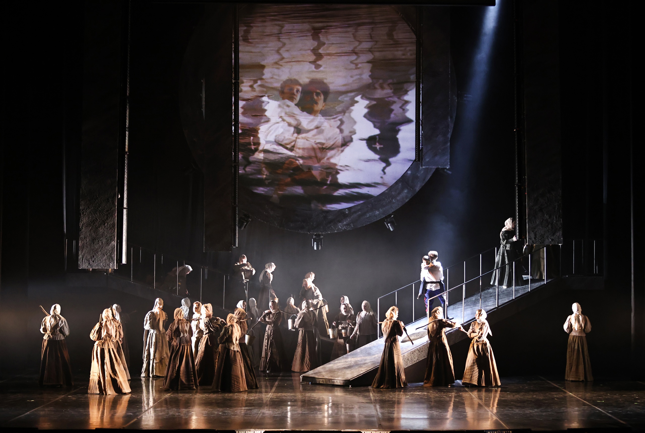 Такого эффекта команда добилась не без помощи Вячеслава Окунева — главного художника Михайловского театра, художника-постановщика и художника по костюмам Мариинского. При создании визуального облика он обратился к супрематизму Малевича. Только вместо известного квадрата остановился на круге как символе вечности, связи поколений и продолжения жизни. Этот элемент работал буквально и фигурально. В начале постановки сценограф вывел на сцену лошадей, мчащихся по степям Дона. А следом обратился к глазу лошади как абстрактному элементу, поместив его в центр сцены и используя в качестве отражения всех перипетий событий и эмоций: Григорий встречает Аксинью, влюбляясь без памяти, – и в «глазе» мы наблюдаем тихий и спокойный Дон; когда разгорается война в нем же пылает огонь. Несмотря на то что Окунев намеренно отошел от этнографического соответствия и прибегает к обобщенным приемам, балет вышел в правильном смысле слова народным, классическим и одновременно современным.