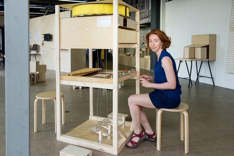 Мой финальный проект «Discovering the common language» родился из идеи Дворца миражей. Меня всегда интересовал свет и то, как он формирует нашу картину мира. Чуть позже я задумалась о том, как бы выглядел мир, если бы света в нем не было. Я начала исследовать то, как два разных человека воспринимают один и тот же опыт — зрительный, аудиальный, тактильный. Возможно ли, что мир будет выглядеть одинаково для разных людей? Возможно ли полностью разделить с кем-то свой взгляд, ощущения и чувства? Моя конструкция состояла из трех частей — музыкального инструмента, собранного из старых ксилофонов, металлофонов и струн. Они получили новую жизнь, а люди — возможность поиграть на чем-то необычном.