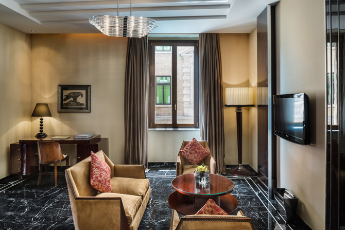 Baglioni Hotel Regina находится на одной из самых известных улиц Рима, Виа Венето, всего в нескольких минутах ходьбы от Испанской лестницы и Виа Кондотти со знаменитыми бутиками и кафе, фонтана Треви и виллы Боргезе. Здание отеля было построено в 1904 году и считается одним из самых важных исторических построек в Риме, а интерьер выполнен в классическом стиле и стиле ар-деко. В 1911 году здесь проживала королева Маргарита Савойская во время реконструкции ее резиденции, и в знак признания превосходного обслуживания разрешила владельцу отеля добавить к названию отеля приставку Regina.