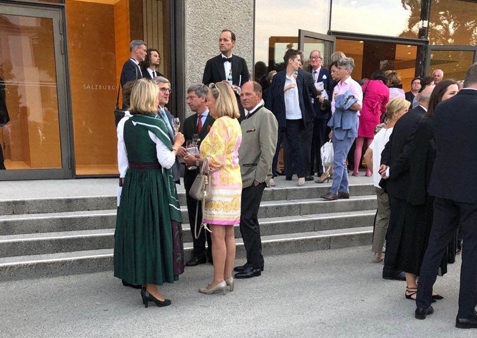Не только воротничка, кстати: австрийская публика приходит на фестивальные спектакли даже не в блэк-тае, а в национальной одежде. Мужчины в элегантных зеленых мундирах, которые бы у нас назвали охотничьими, дамы — в пышных народных платьях дирндлах с глубочайшими декольте.