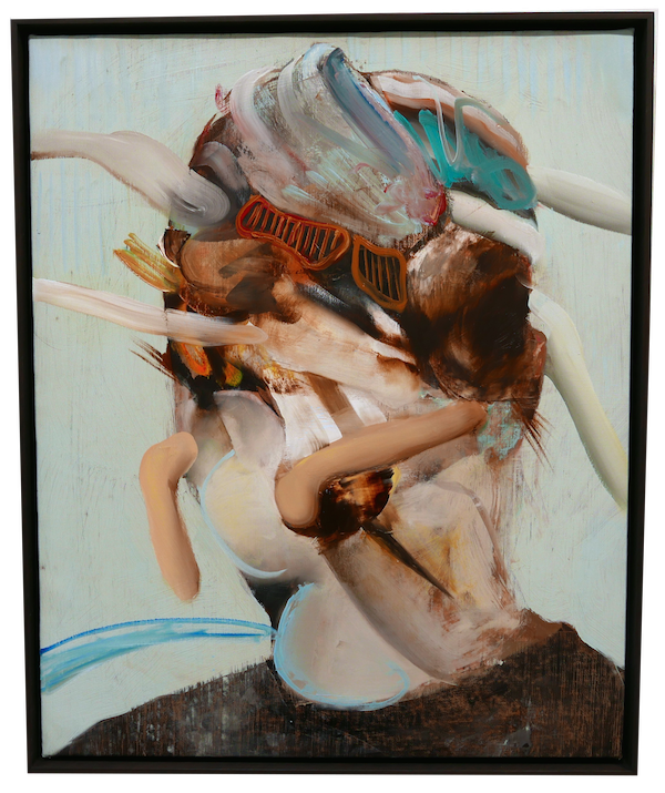 Небольшой, всего 60 сантиметров, портрет Адриана Гени — куда сейчас без него — на стенде галереи Plan B. Цена вопроса —