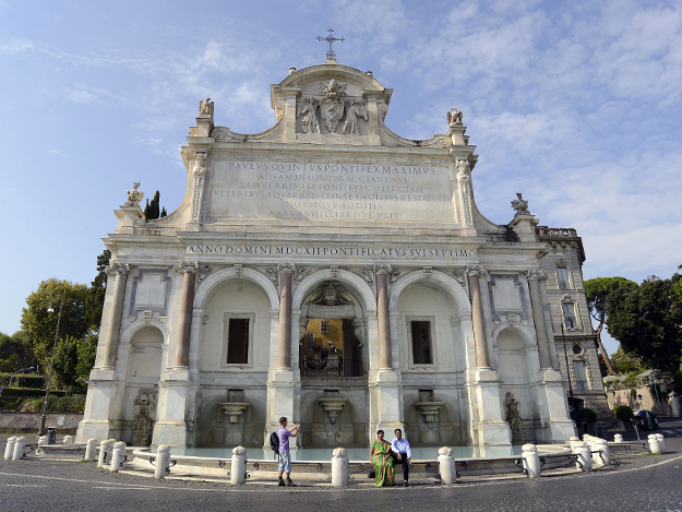 Фонтан Аква-Паола становится первым местом, которое мы видим в фильме. Здесь слушает экскурсию группа азиатов, и внезапно один из туристов умирает.