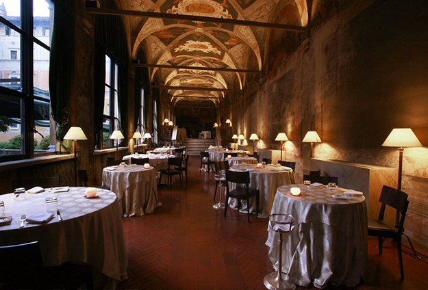 Ресторан La Veranda специализируется на римской кухне. Из закусок советуем попробовать овощи в кляре с чернилами кальмара и соусом из хрена (18 евро) или мясо свежей маринованной рыбы с овощами (22 евро). Из горячего рекомендуем паппарделле с говяжьим рагу и свиной печенью с соусом пармезан (22 евро) и лингвини с моллюсками и сладким чесночным соусом (17 евро). В барной карте огромный список местных вин, а с выбором вам поможет сомелье ресторана.