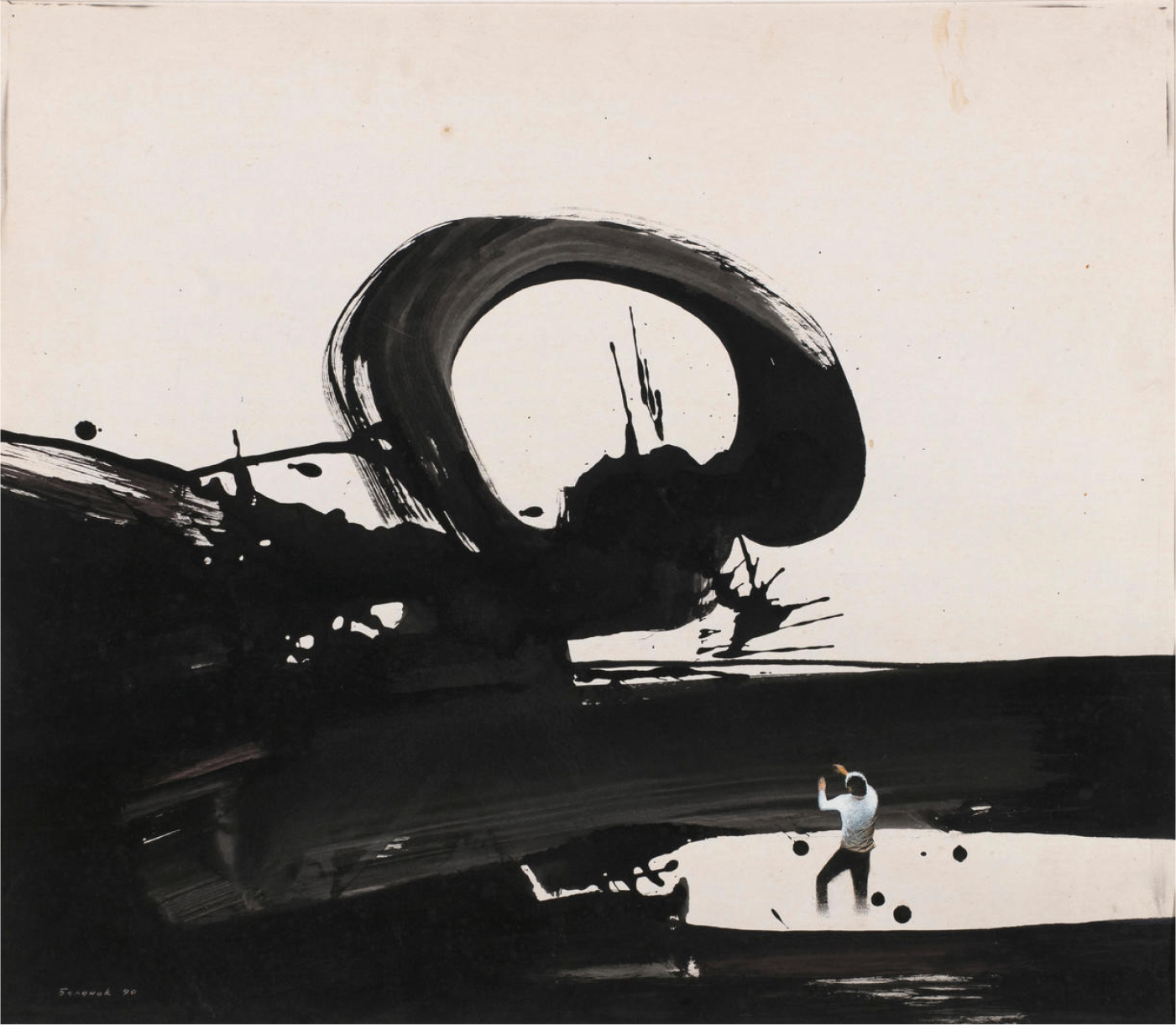 Совсем другая грань — искусство шестидесятника Петра Беленка, которое он сам называл паническим реализмом. Сюжеты совершенно фантастические: на человека надвигается неведомая катастрофа, воронка или черная дыра, а он спасается бегством. Работы получаются на стыке абстрактного сюжета и очень реалистичной картинки. По степени вовлеченности зрителя и сопереживания — почти «Последний день Помпеи» Брюллова. Беленок прожил недолгую жизнь и умер в 1991 году, но перемены и потрясения будущего он разглядел совершенно пророчески.