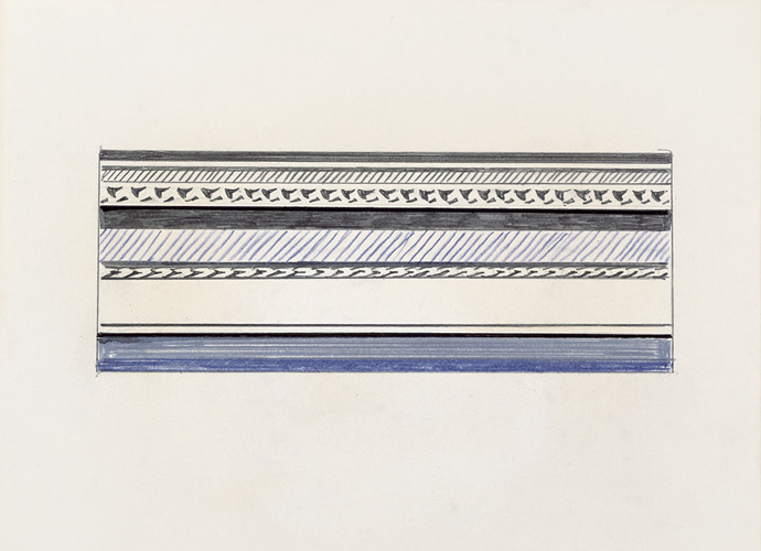 За основу для своих орнаментальных рисунков Лихтенштейн взял верхнюю, несомую часть архитектурного ордера — антаблемент — по сути балочное перекрытие, которое вместе с системой колонн характерно для классической архитектуры. В современной жизни антаблемент часто применяется при отсутствии колонн для завершения верхней части стены здания или какой-то его части, например, этажа. На этих картинах очень четко видны несущая балка, элементы карниза и чаще всего фриз —декоративная полоса, обрамляющая балку.