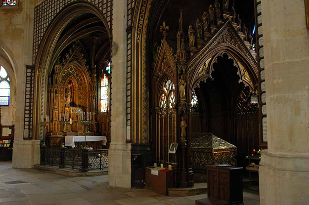 Сент-Этьен-дю-Мон — католическая церковь на холме святой Женевьевы в Париже. Церковь строилась с 1494 по 1624 год и представляет собой наслоение нескольких художественных стилей: ренессанса, барокко и готики. Посмотреть на это архитектурное сооружение стоит хотя бы потому, что здесь находится гробница с мощами покровительницы Парижа святой Женевьевы, которая по легенде в 451 году защитила город от нашествия гуннов.