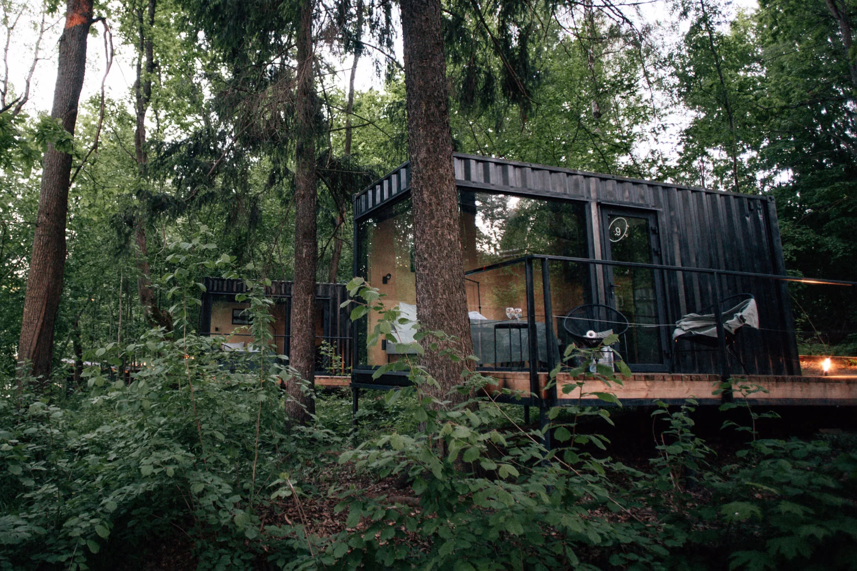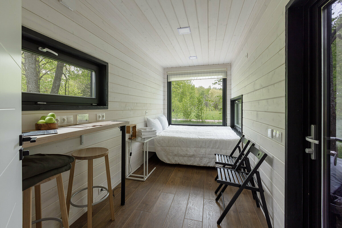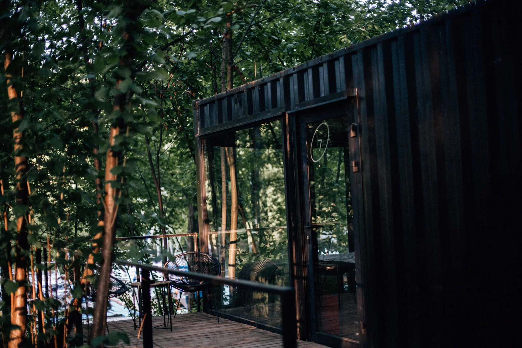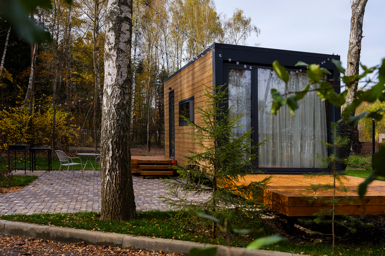 Собственный глэмпинг команды яхтенного сообщества «Сила ветра» — с домиками из морских грузовых контейнеров, оформленными в скандинавском стиле: панорамные окна, веранда, деревянная отделка стен, лампы и краны с черным матовым покрытием. Также для отдыхающих оборудована общая зона барбекю, рядом есть супермаркет (если захотите приготовить что-то несложное в домике), работают все популярные сервисы доставки. Из развлечений: парусные тренировки, кино в коворкинге, настольные игры. С животным приехать тоже можно — об этом следует уведомить при бронировании и внимательно изучить правила проживания с питомцем.
