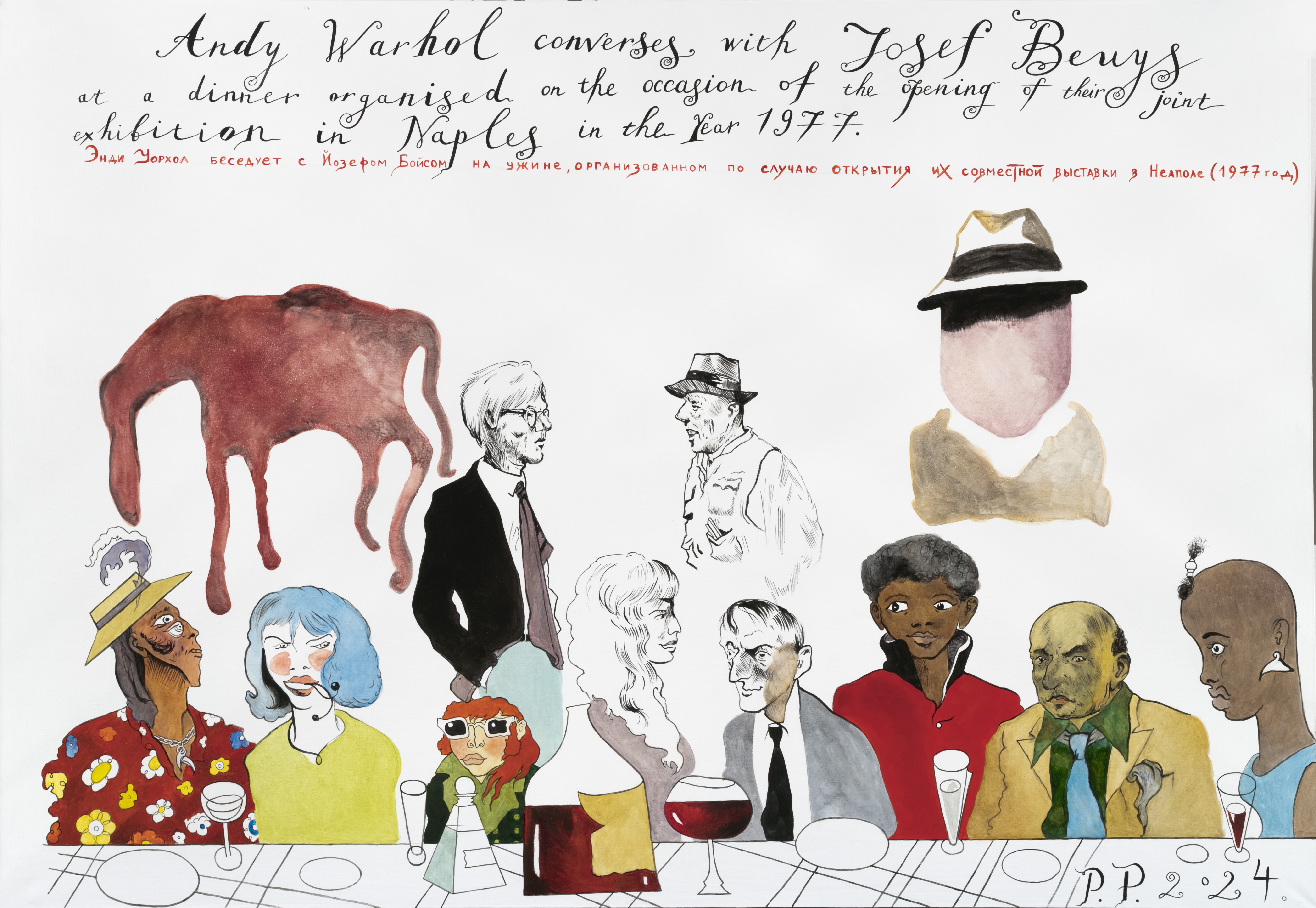 Галерея VLADEY совместно с OVCHARENKO представила выставку новой серии работ Павла Пепперштейна «Ужины» и его редкой графики 1980-х годов. Серия живописных холстов изображает череду ужинов, якобы происходящих в крупнейших музеях современного искусства, поскольку жизнь арт-мира нередко имеет форму коллективных трапез, скромных или роскошных застолий, обедов или ужинов. Именно в таких ситуациях художники, сотрудники музеев, галеристы, арт-критики, историки и исследователи искусства обсуждают животрепещущие проблемы, которые в совокупности и составляют ту почву, из коей искусство затем и произрастает. Ужины изображены в мифологической манере, и внимательный зритель может обнаружить, что на них присутствуют не только люди, но и также животные, птицы, инопланетяне и прочие диковинные существа, чье происхождение неизвестно.