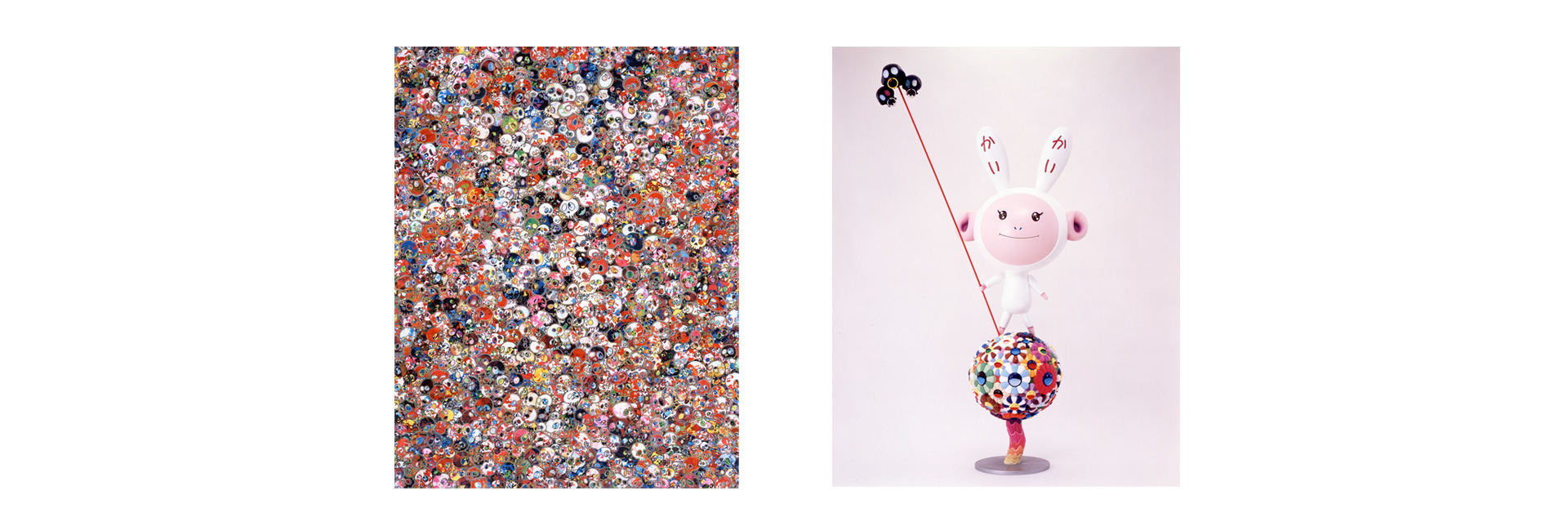 *Такаси Мураками. Воспоминания о бурной жизни. 2015. Холст, монтированный на алюминий, акрил. 300 × 234,4 см. Частное собрание. Предоставлено Perrotin © 2015 Takashi Murakami/Kaikai Kiki Co., Ltd. All Rights Reserved. / Такаси Мураками. Кайкай. 2000–2005. Сталь, стекловолокно, синтетическая смола, масло, акрил. 181,5 × 71 × 53 см. Частное собрание. Предоставлено Perrotin © 2000–2005 Takashi Murakami/Kaikai Kiki Co., Ltd. All Rights Reserved.