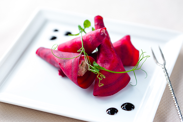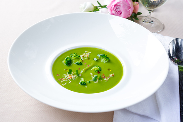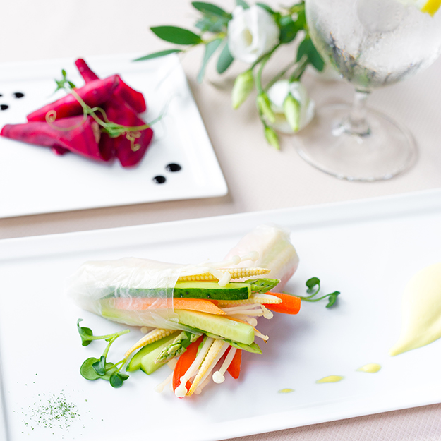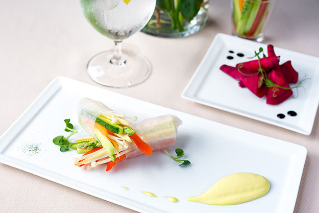 Диетическое меню состоит из низкокалорийных и полезных блюд. Гости могут выбрать сбалансированное меню, специально разработанное на каждый день недели, или заказать по карте. В меню входят: пинцимонио из свежих овощей в рисовом тесте (300 руб.), равиоли из свеклы с орехом пекан и апельсиновым соком (350 руб.), крем-суп из брокколи с миндалем (300 руб.), кубики лосося с копченым чаем, соусом из молодой капусты и зеленой спаржей (1 400 руб.) и многое другое. В качестве десерта гостям предлагают попробовать пудинг из фундука с клюквой и цедрой апельсина (250 руб.), равиоли с ананасом и шоколадным соусом (350 руб.) и киноа с черникой и ванильно-лаймовым соусом (350 руб.).