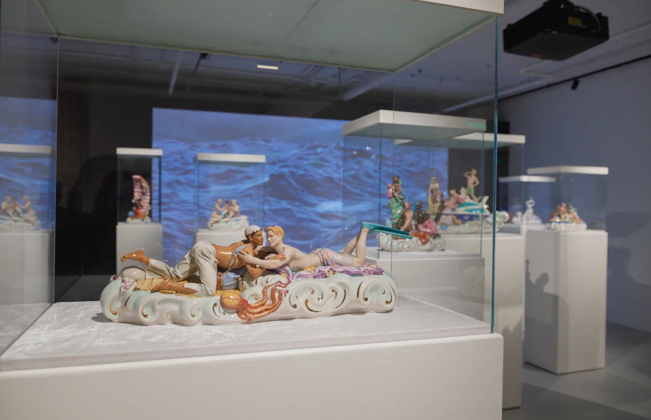 Четыре российских художника, входящие в состав AES+F (Татьяна Арзамасова, Лев Евзович, Евгений Святский и Владимир Фридкес), принимают участие в концептуальных проектах, сочетающих в себе фотографию, видео, инсталляцию, перформанс и смешанную технику. Авторы создают тщательно продуманные аллегорические сценарии на социальные темы. Проект «Mare Mediterraneum» впервые был представлен в Театре Массимо в Палермо на передвижной биеннале европейского искусства. AES+F исследуют актуальные европейские социально-политические конфликты. Фарфоровые статуэтки в стиле XVIII века заставляют задуматься о проблеме миграции и переворачивают представление о ценностях в современном обществе, где комфортное существование ставится выше гуманистических идеалов.