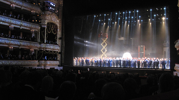 Вечером 28 октября состоялось долгожданное открытие основной сцены Большого театра. Тысячи гостей, каждый из которых мог попасть на открытие лишь по предъявлении именного приглашения и паспорта, стали свидетелями события, которого с нетерпением ждали как в России, так и во всем мире.