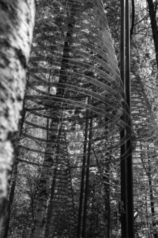 «Акведук» в качестве одного из экспонатов парка выбрала Ксения Новохатько (сокуратор маршрута «Малевич в лесу» — Прим. BURO.). Так как ландшафт местности в парке Малевича не позволял повторить первоначальный объект в натуральную величину, решено было воспроизвести только фрагмент композиции. Так «Акведук» стал своего рода «руиной», воспоминанием о работе мастера. «Руина» в концепции романтического парка свидетельствует о всепоглощающем времени, о всепобеждающей силе природы, постепенно захватывающей следы цивилизации. Отсылая своими формами к древнеримским акведукам, прозрачная линейная конструкция Александра Константинова как будто впускает в себя природу, с определенной точки зрения «растворяется» в ландшафте, подобно тому, как античные руины, обраставшие деревьями, постепенно становились органичной частью природного окружения.