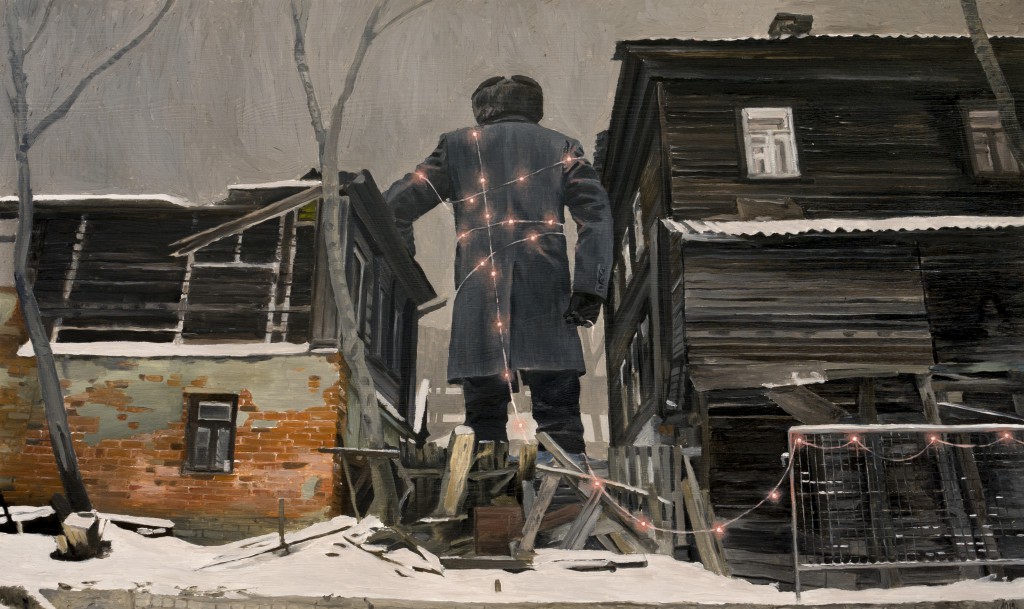 Молодой художник Андрей Оленев работает в технике «мистического реализма», с помощью которой «передает дух и настроение города». Андрей живет и работает в Нижнем Новгороде: он исследует местную архитектуру и критически осмысляет застройку города. Результат его творческих изысканий — технически сложные цифровые коллажи и живопись. «Если живопись для меня — это театр, то графика — это актерская труппа», — рассказывает Оленев. Выставка завершится аудиоинсталляцией, в которой художник соберет все самые важные знаки и символы родного города.