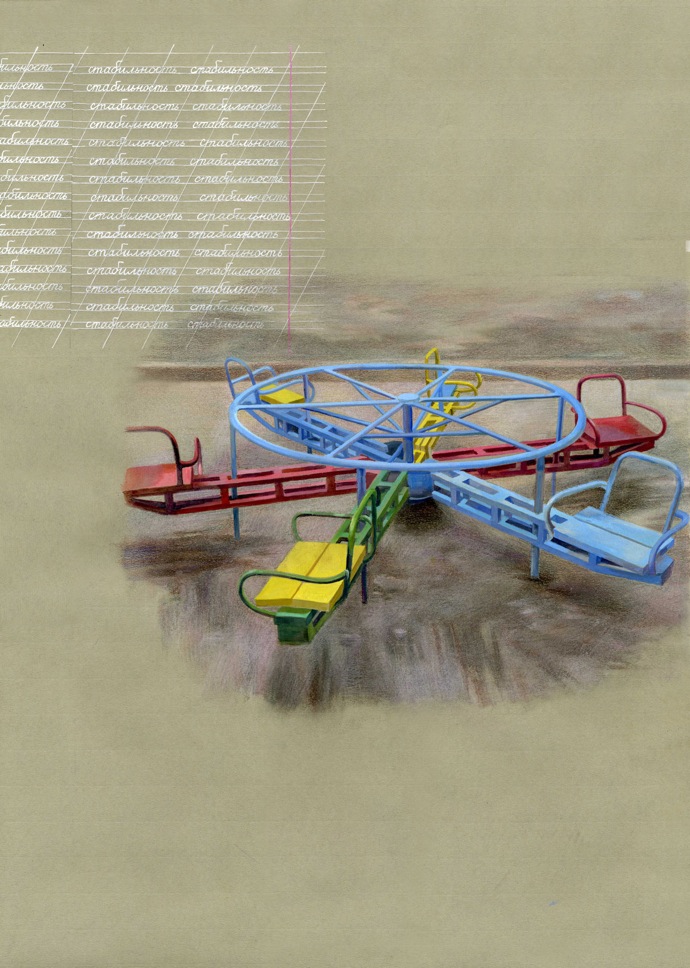 "Стабильность", из серии "Похвала глупости", 70х50 см, бумага, акрил, пастель, 2012